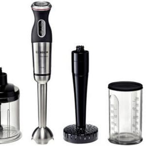 - Verre doseur – Bol hachoir – Emulsionneur – Pressepurée – Fouet
