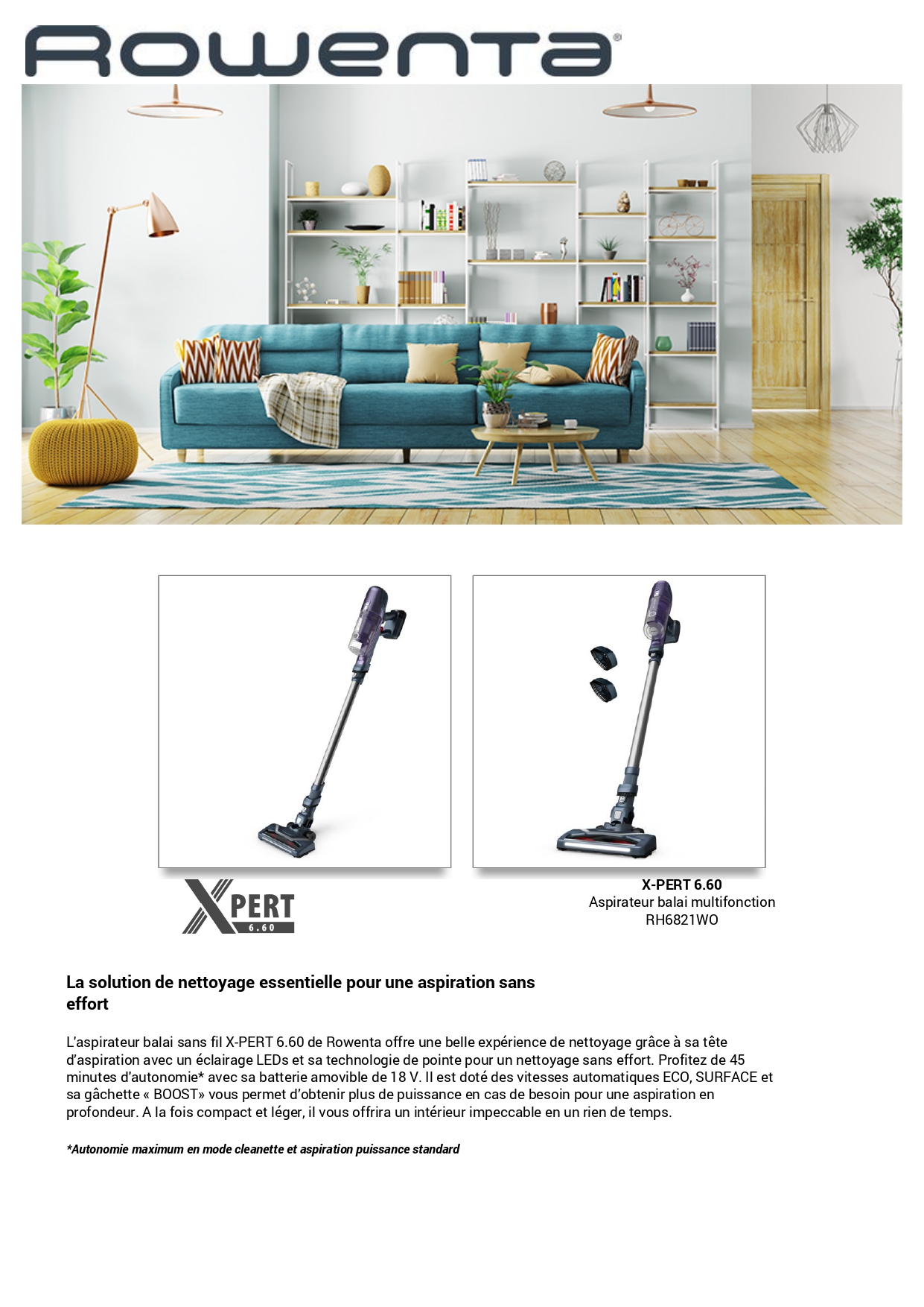 Aspirateur Balai ROWENTA X-PERT 6.60 RH6821WO