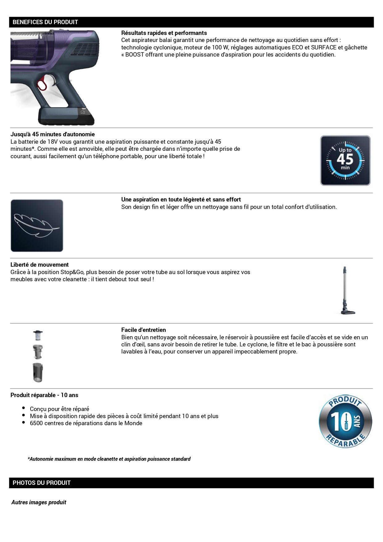| Autonomie max. (min) | 45 |