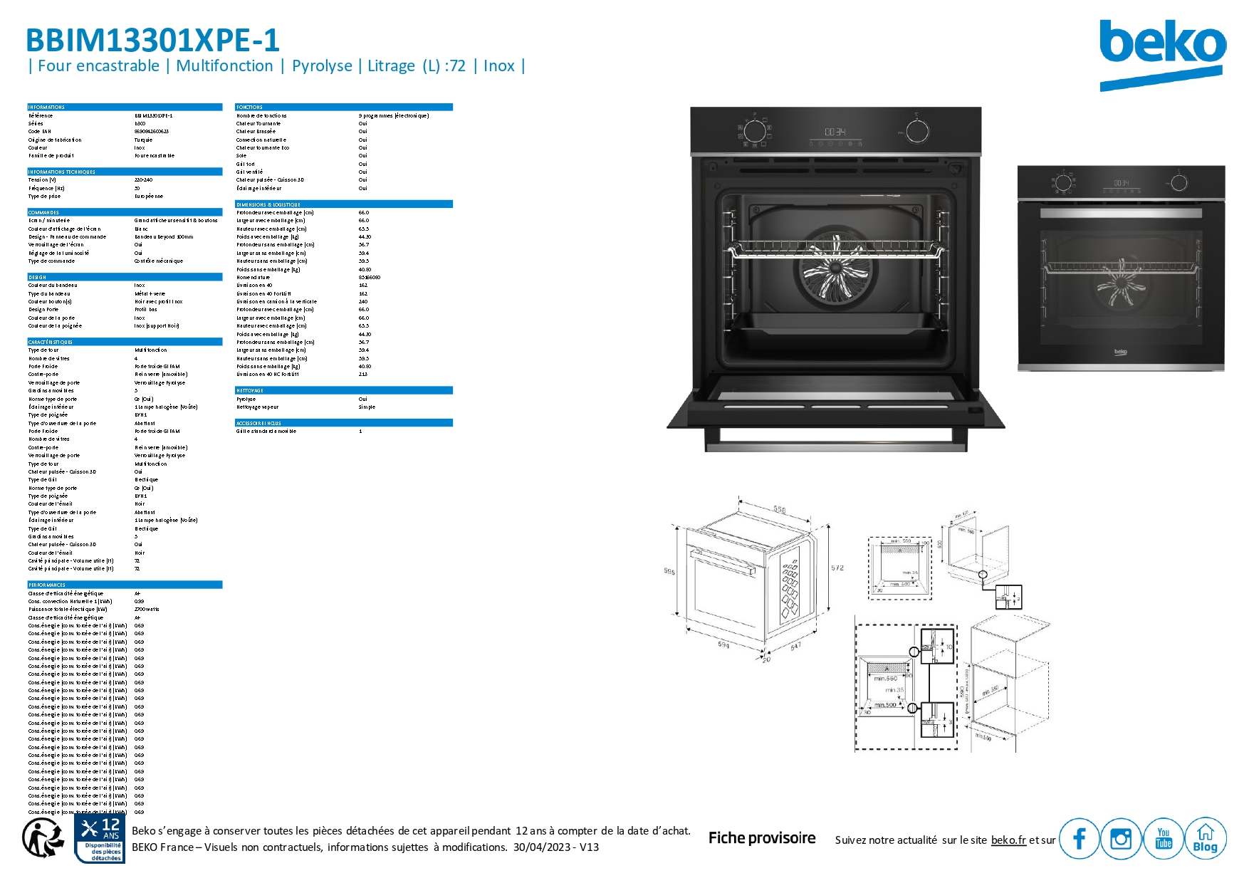 | Volume du four | 72 L |