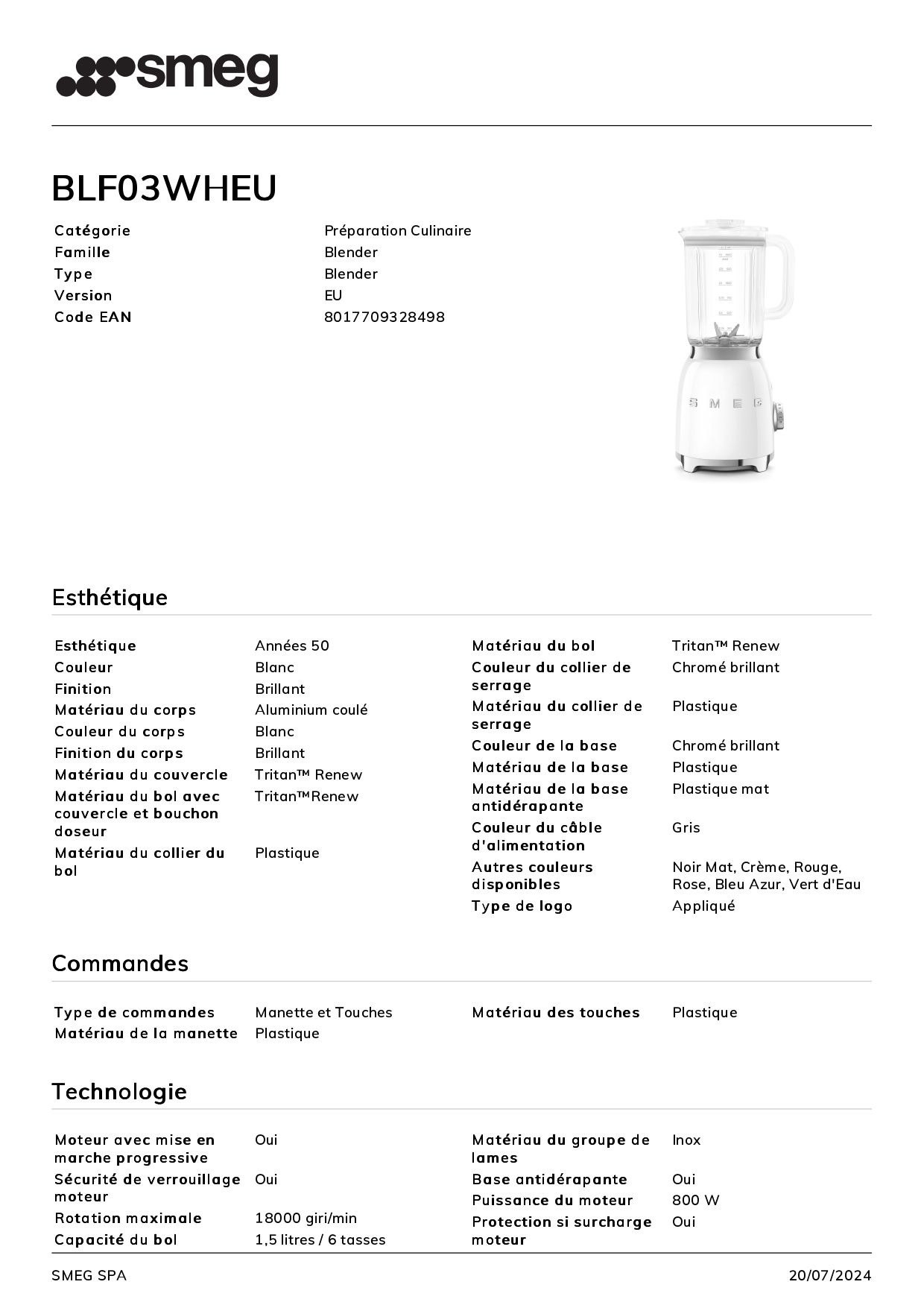 Blender Blanc SMEG BLF03WHEU