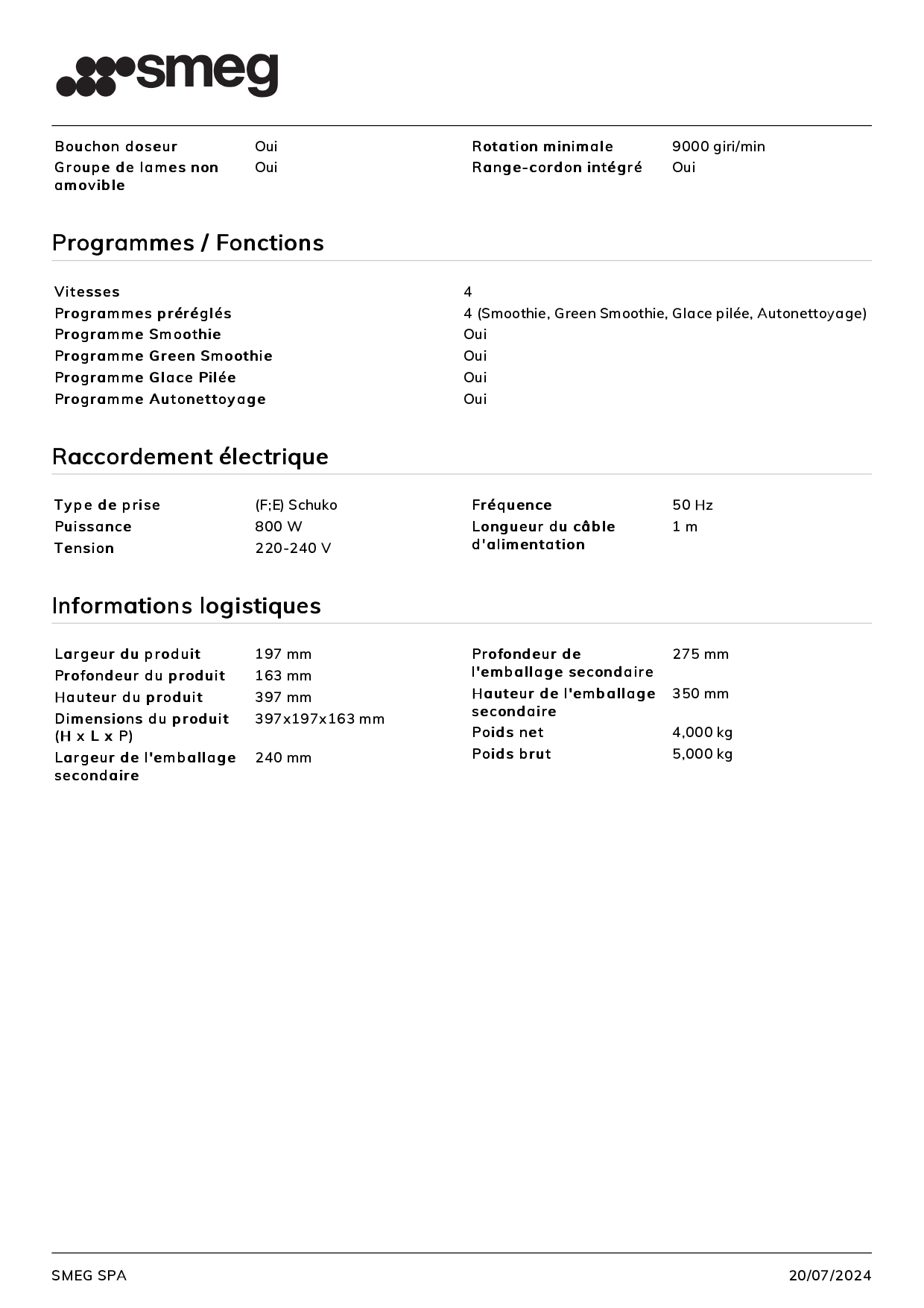 - Smoothie, Green Smoothie et Glace pilée : trois programmes préréglés pour un résultat final idéal