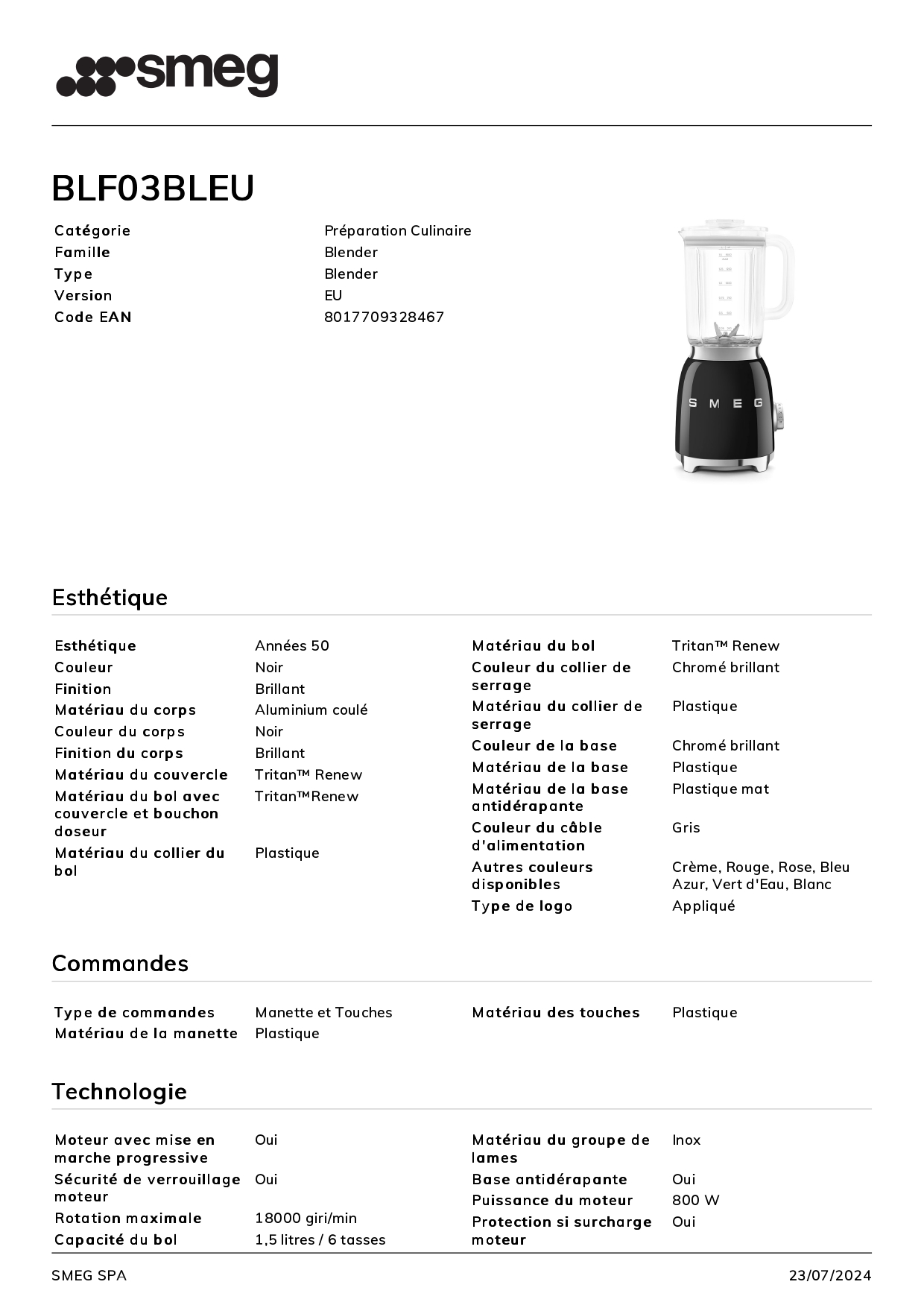 Le blender de la gamme “Années 50” est l’allié parfait pour une grande variété de préparations.