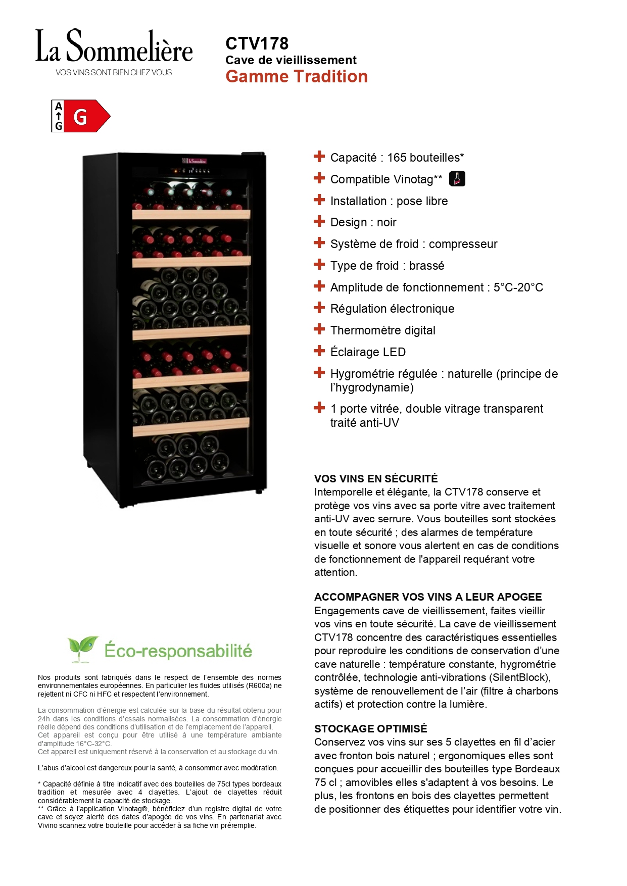 Cave à vin CTV178 La Sommelière 165 bouteilles