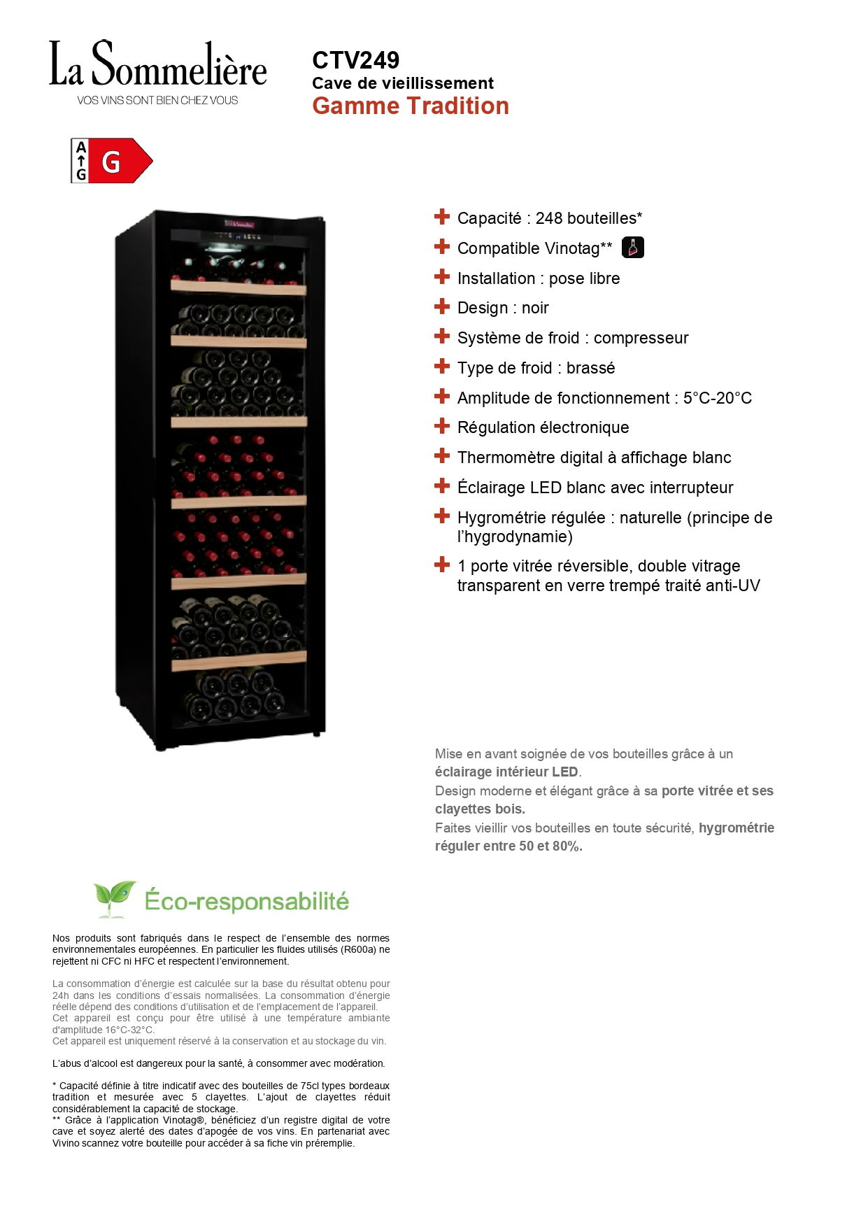Cave à vin CTV249 La Sommelière 248 bouteilles