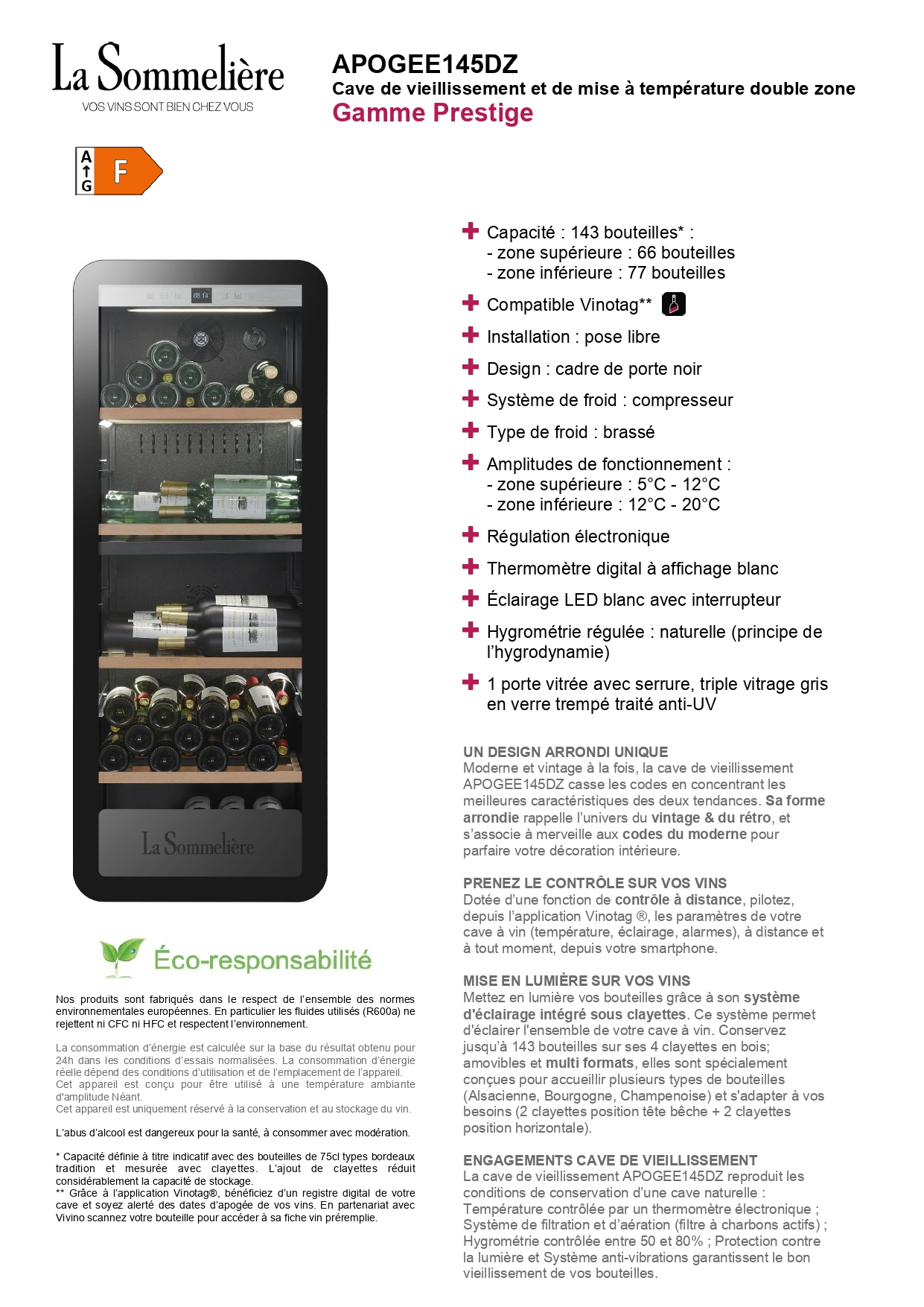 Cave à vin double zone La Sommelière APOGEE145DZ 143 bouteilles