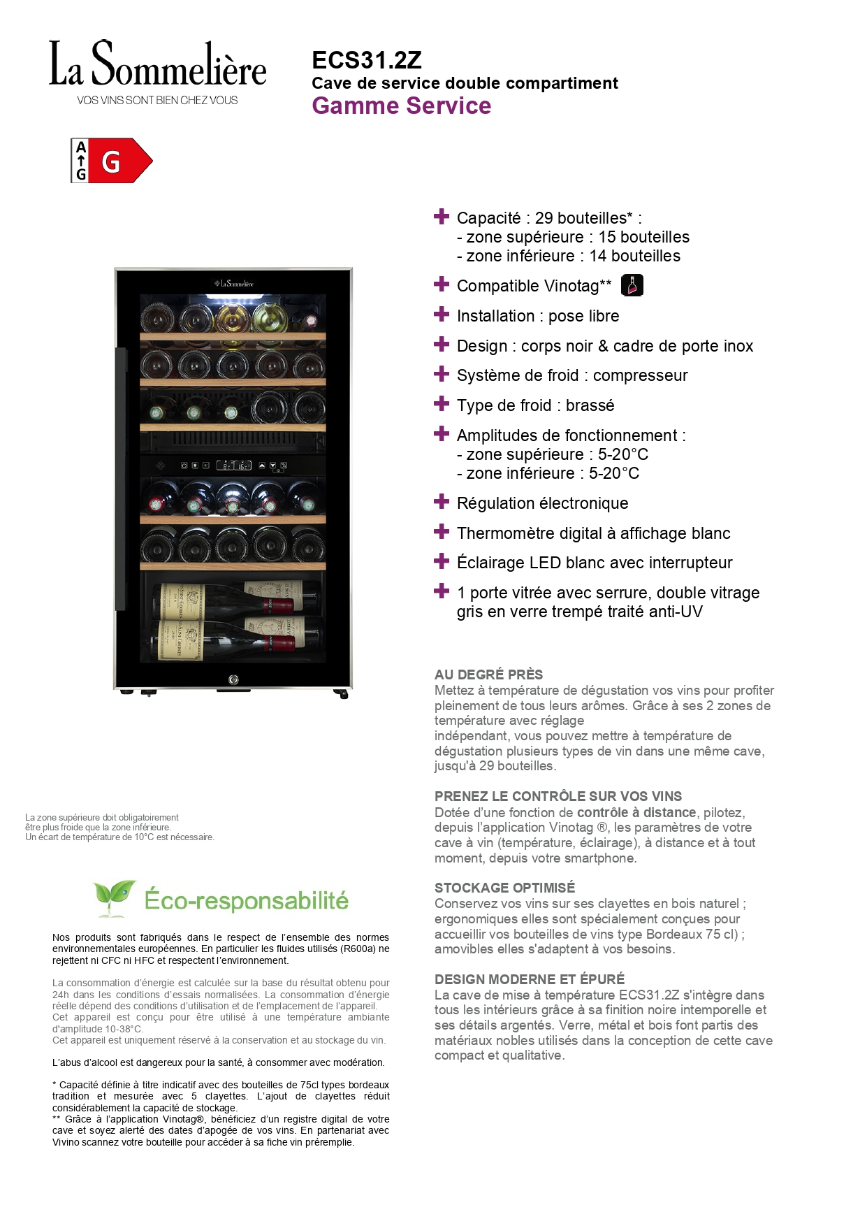 Cave à vin double zone La Sommelière ECS31.2Z 29 bouteilles