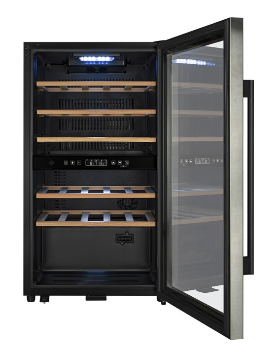 Avec des dimensions compactes de 48 x 43 x 86 cm, cette cave à vin se fond discrètement dans votre intérieur, offrant tous les avantages d’une cave à vin sans compromettre l’esthétique.