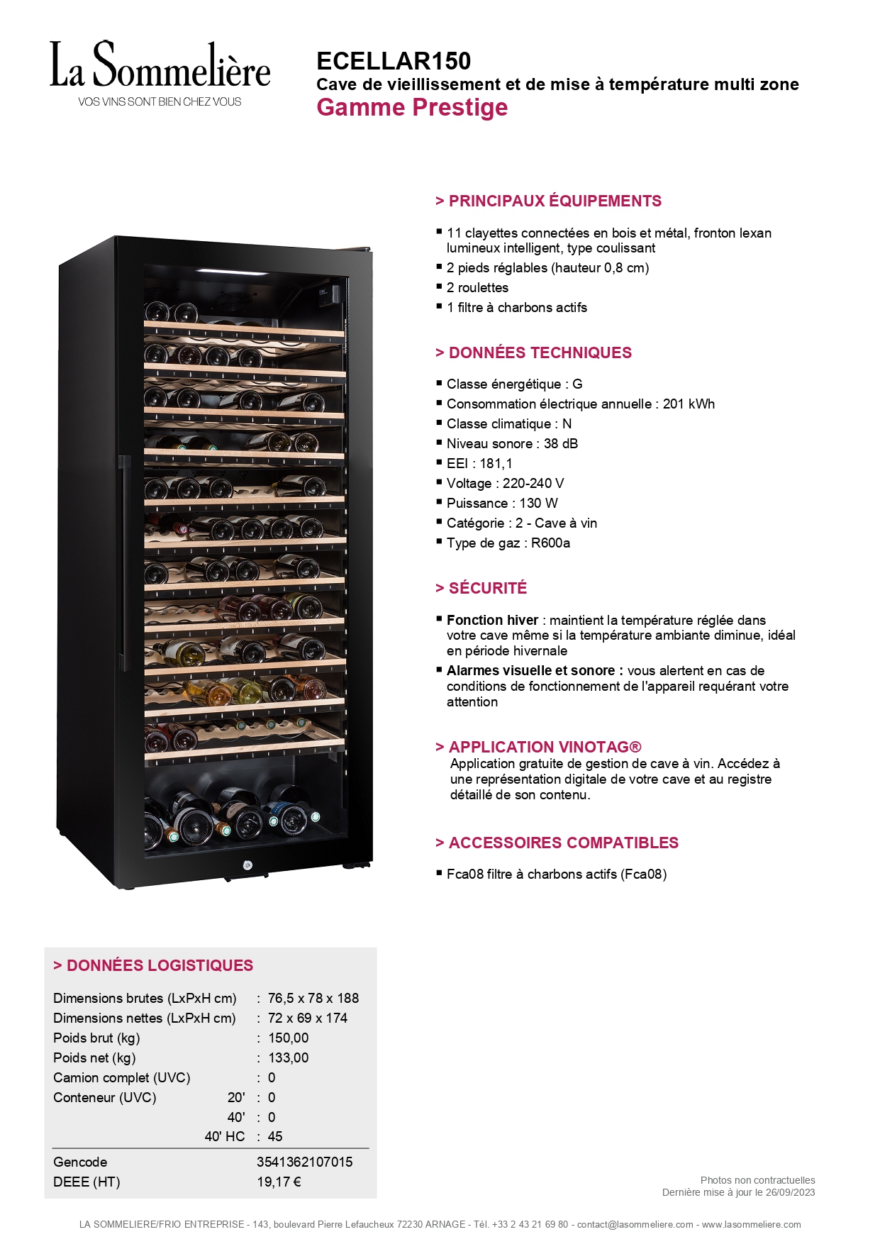 - Capacité 149 bouteilles ;