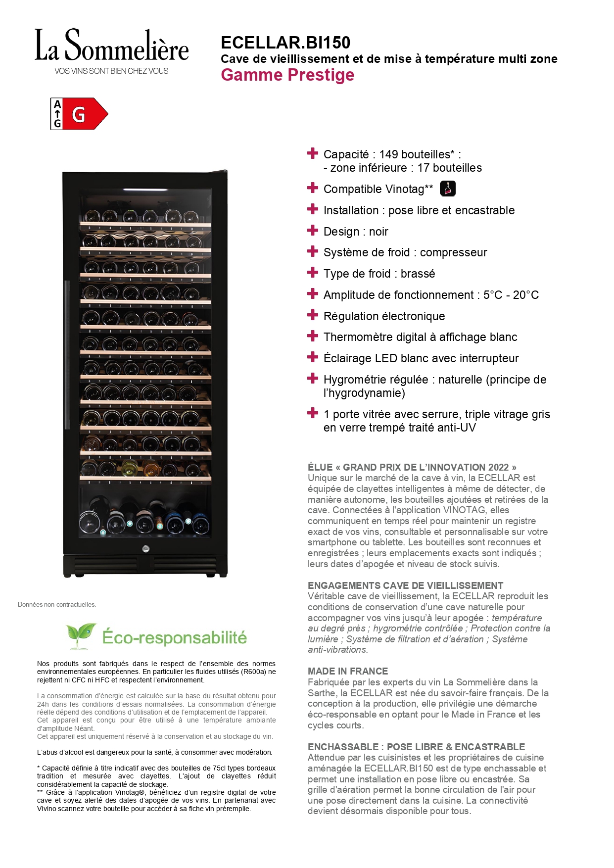 Cave à vin La Sommelière ECELLARBI150 149 bouteilles