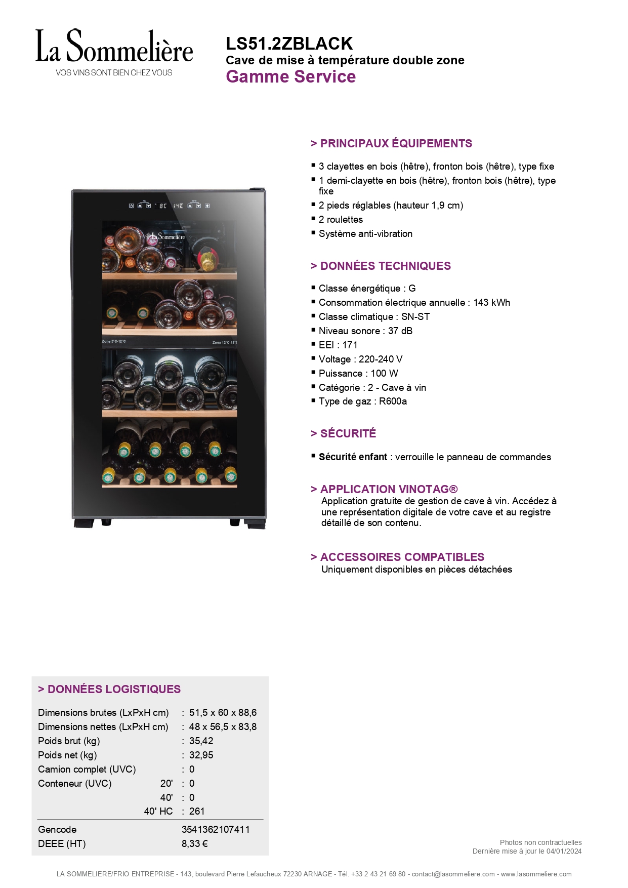 Dim. nettes (LxPxH cm) 55,5 x 58 x 145
