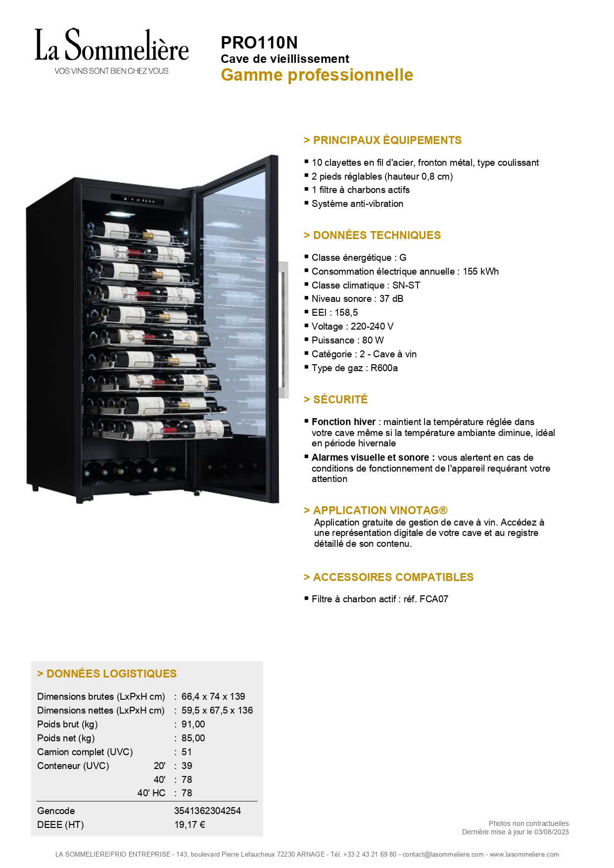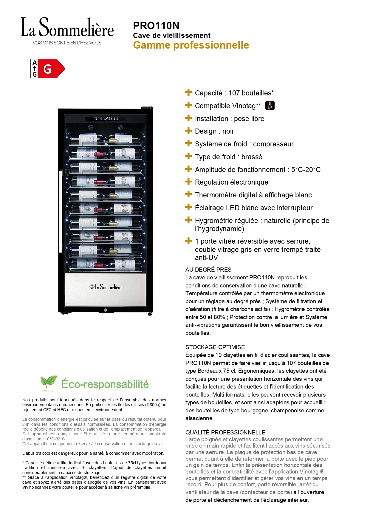 Cave à vin La Sommelière PRO110N 107 bouteilles