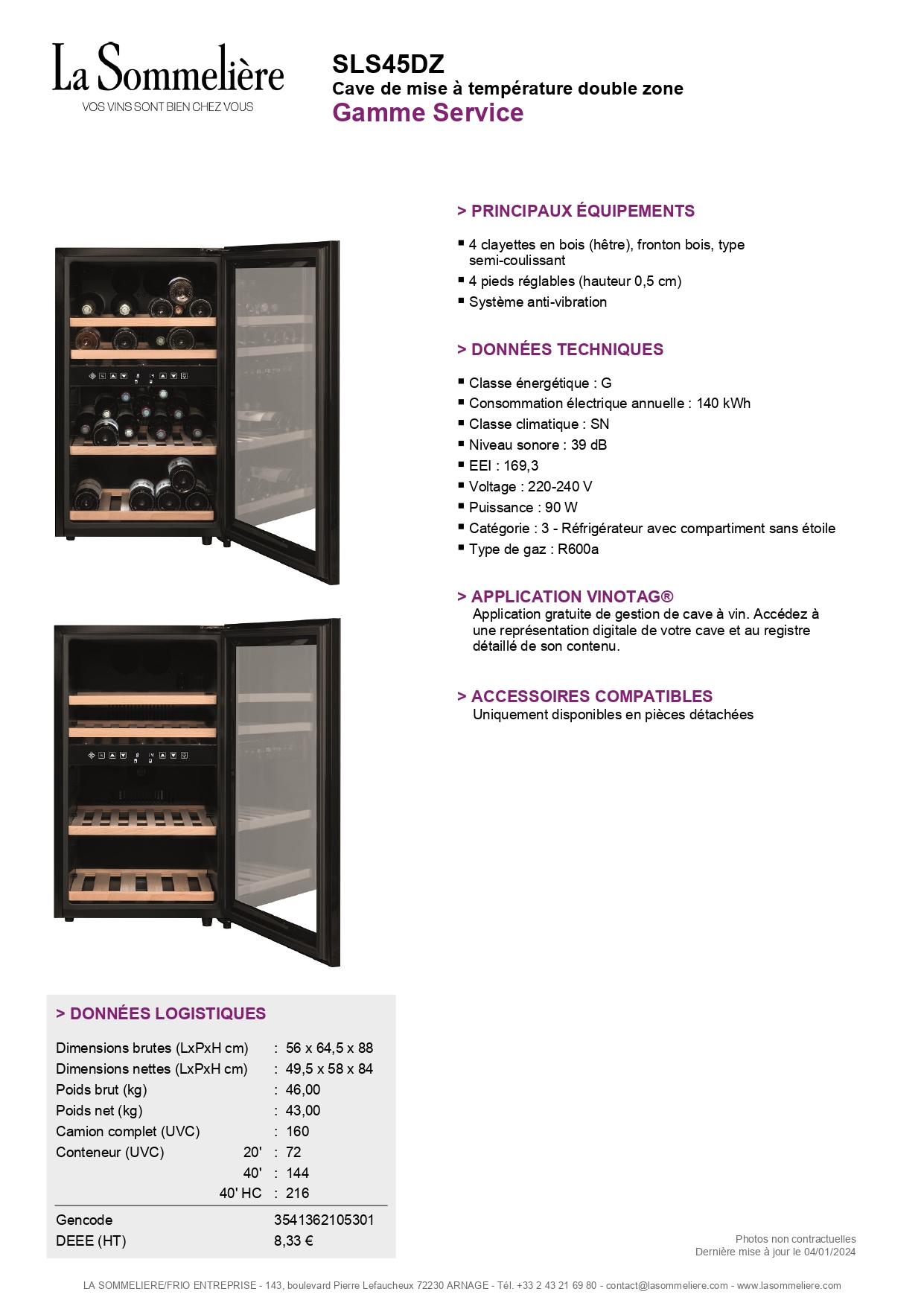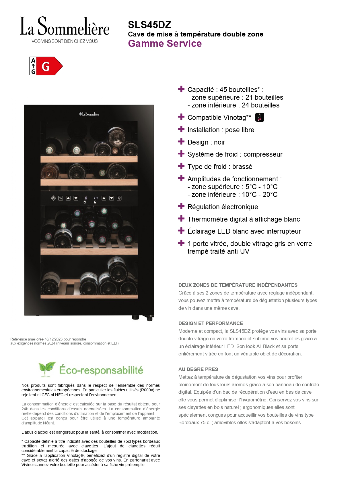 Cave à vin La Sommelière SLS45DZ Double zone 45 bouteilles