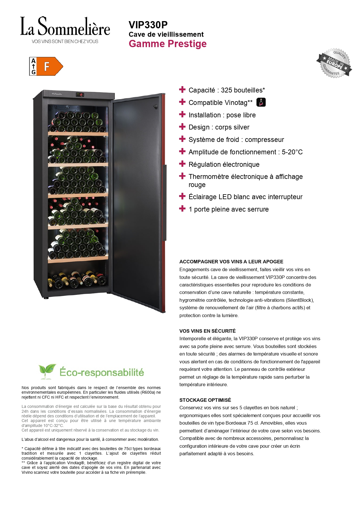 Cave à vin VIP330P La Sommelière 329 bouteilles