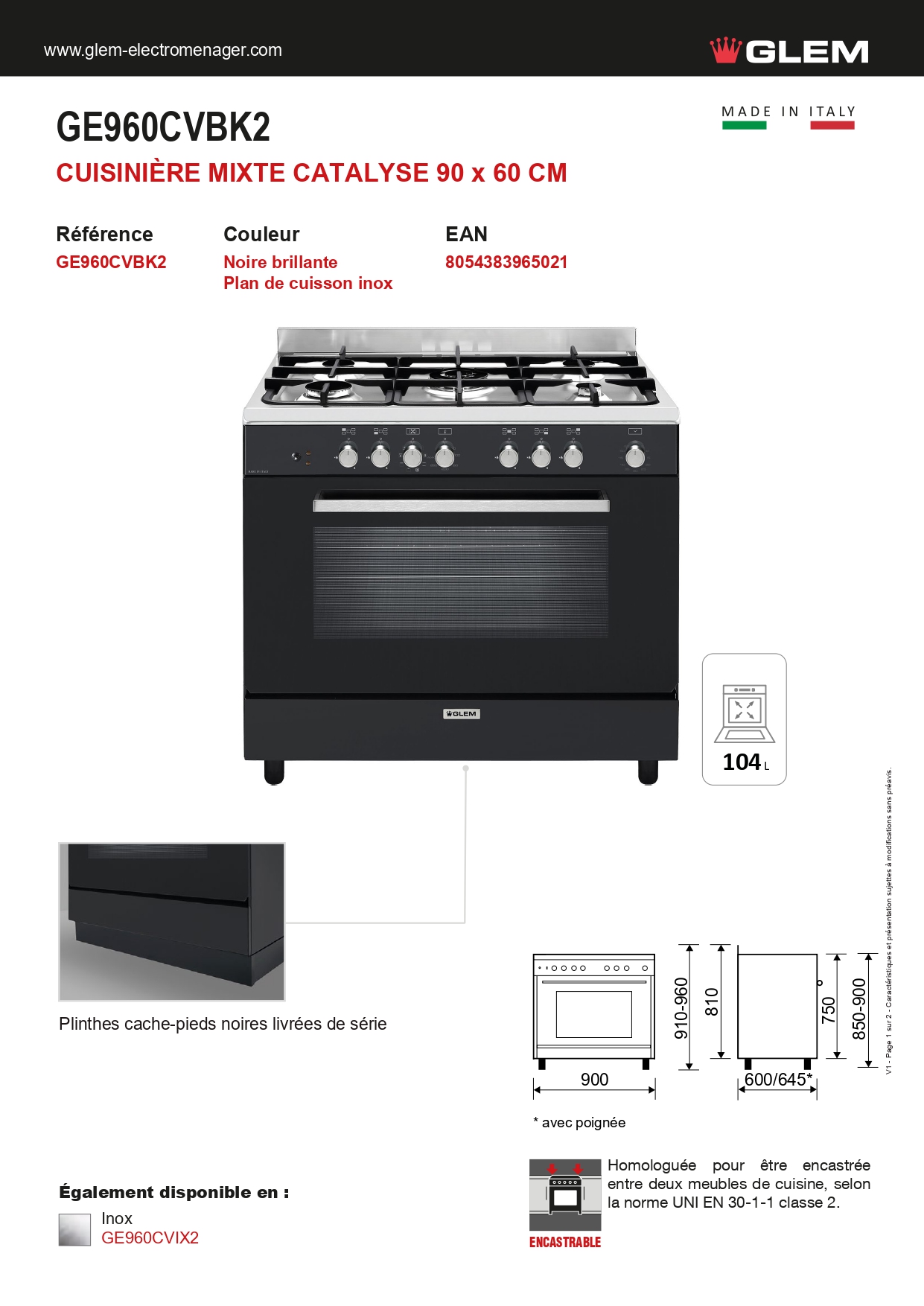 5 foyers gaz dont 1 triple couronne 3,8 kW