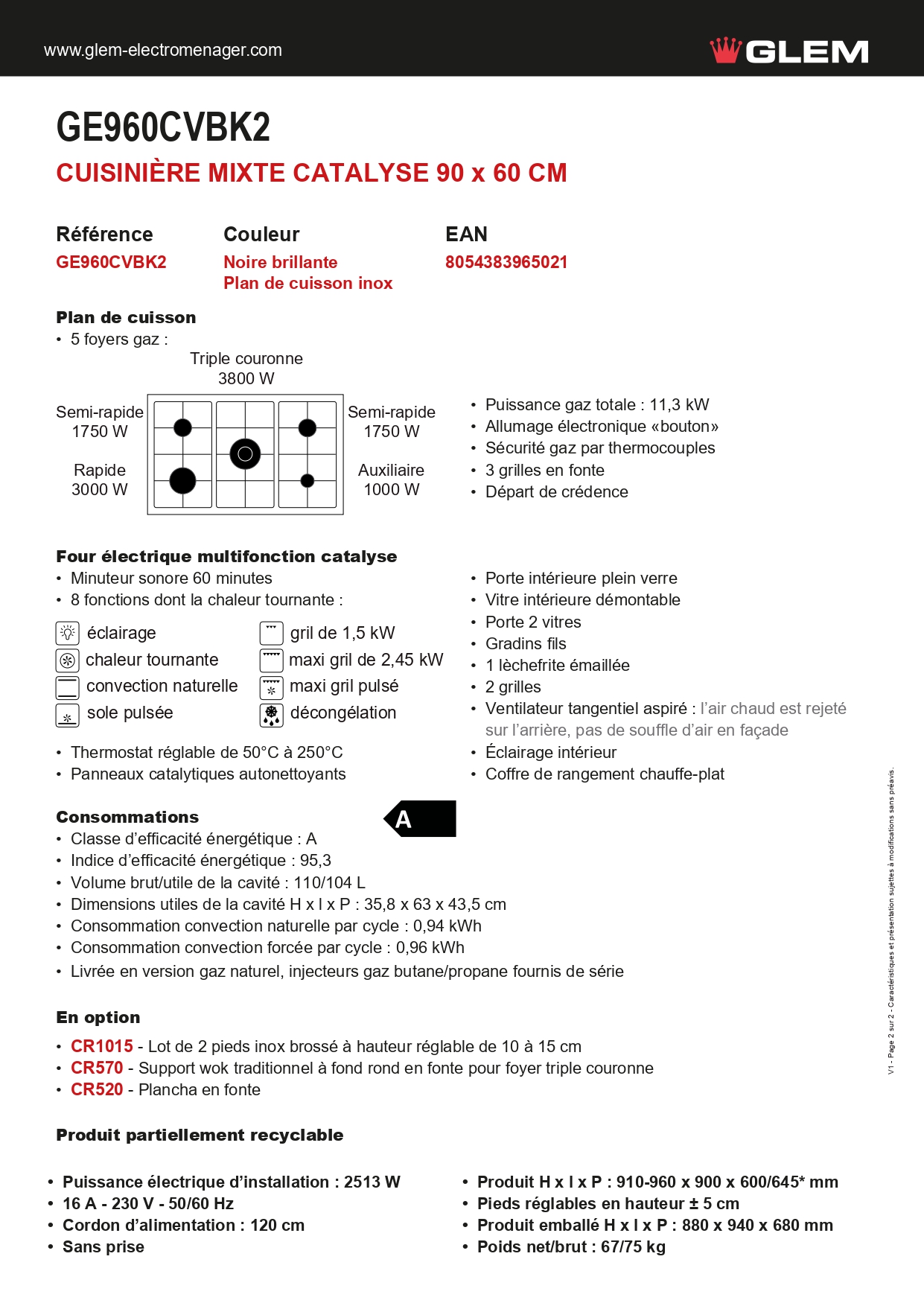 5 foyers gaz dont 1 triple couronne 3,8 kW