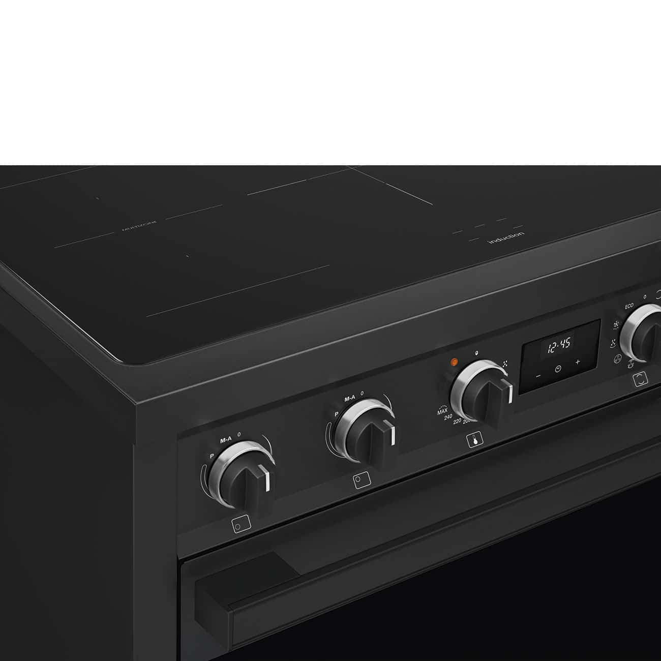 Ce piano de cuisson de 90 cm B95IMAN9 anthracite vous offre 1 très grand four multifonction de 115 litres, ainsi que 5 foyers induction pour plus de flexibilité, l’idéal pour une famille nombreuse, et pour cuisiner au four de grosses pièces. Ses 5 Boosters sont parfaits pour saisir vos aliments rapidement ou faire bouillir vos liquides en un temps record, son four chaleur tournante pour cuisiner de façon homogène, et ce, sur plusieurs niveaux simultanément sans mélanger les odeurs et les saveurs.