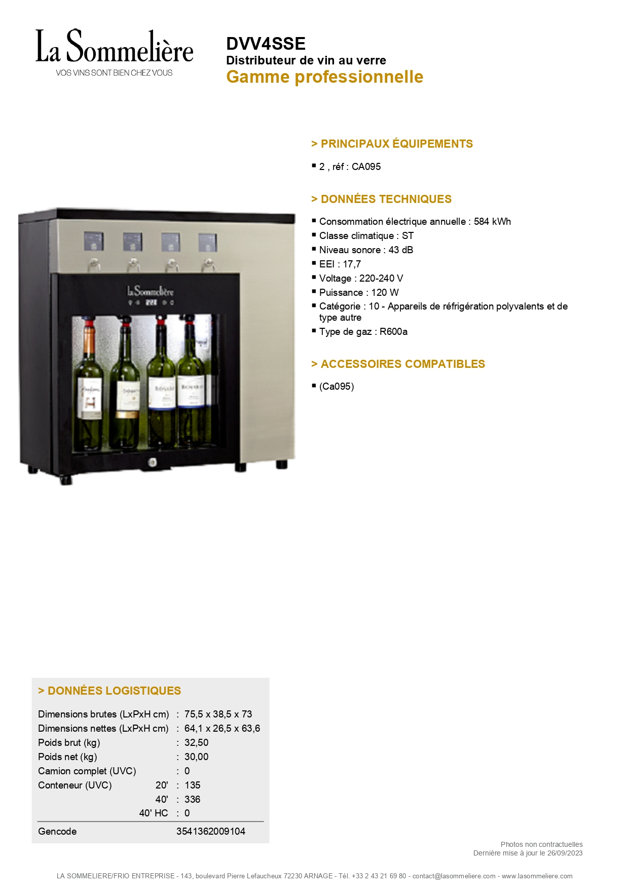 Distributeur de vin au verre La Sommelière 4 bouteilles DVV4SSE