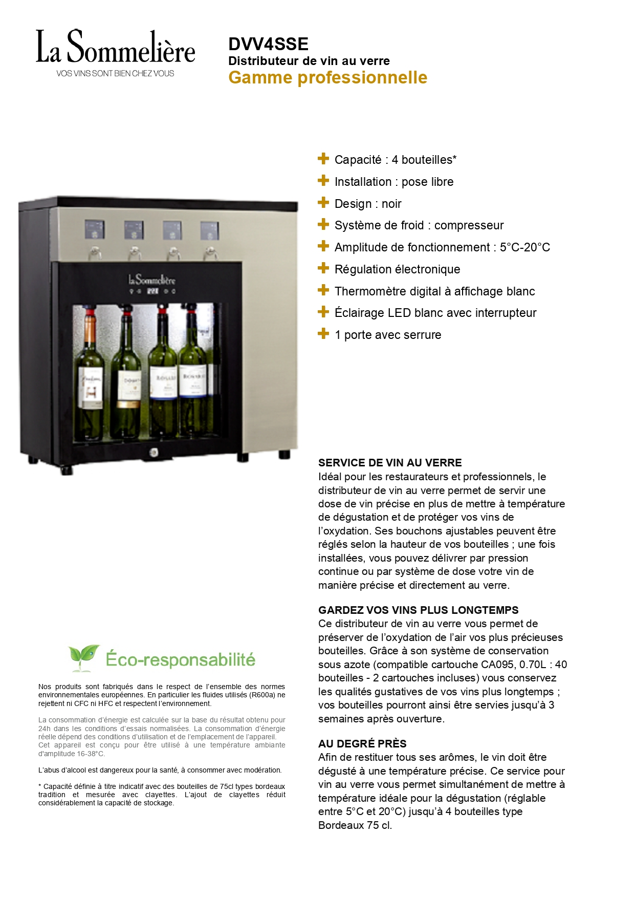 Distributeur de vin au verre La Sommelière 4 bouteilles DVV4SSE