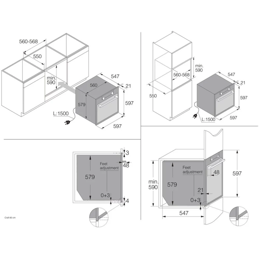 Hauteur minimale de la niche: 590 mm