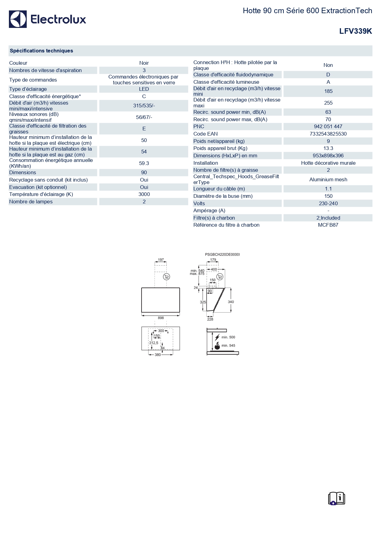 Hotte inclinée LFV339K
