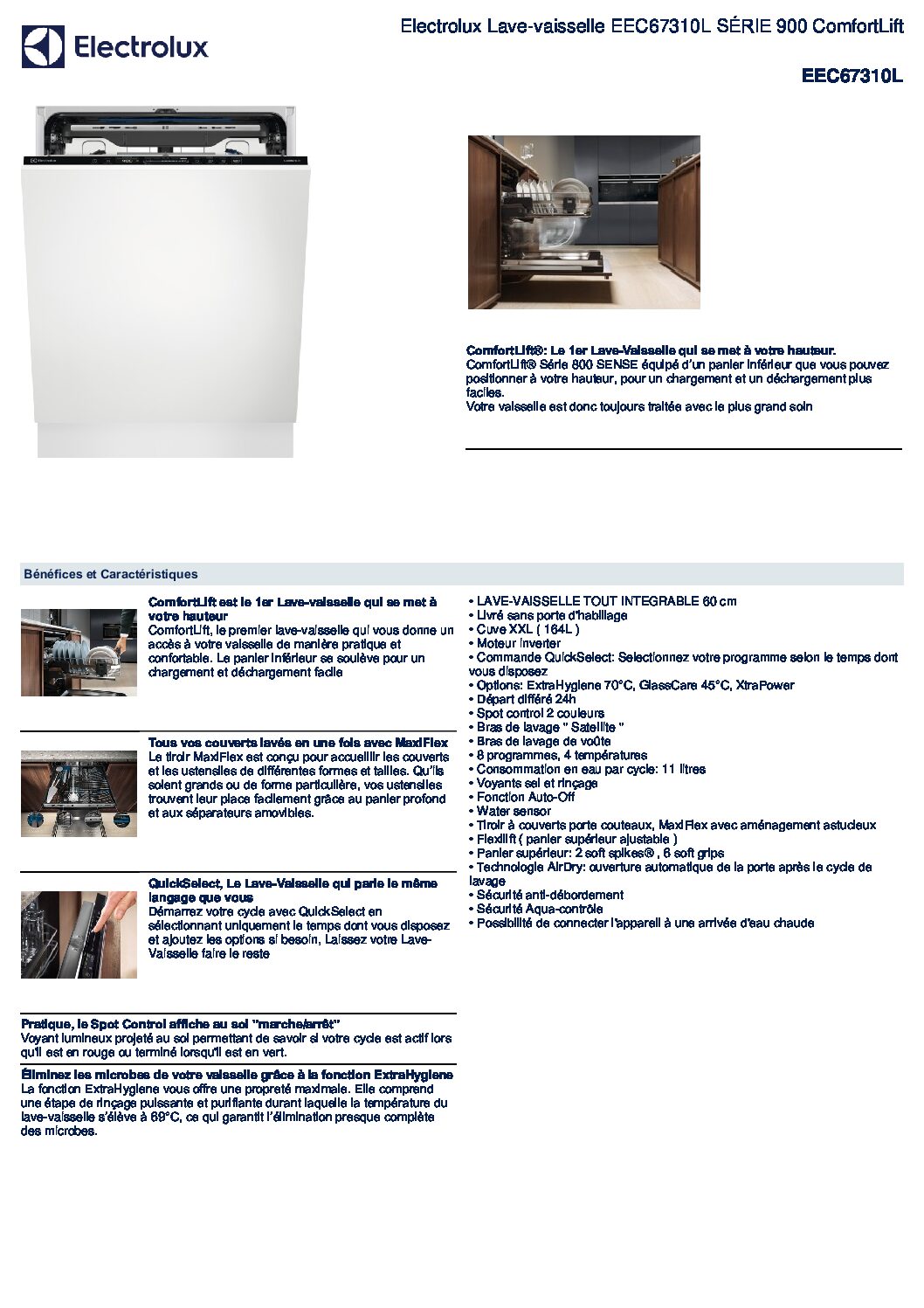 Le lave-vaisselle encastrable Electrolux EEC67310L est un choix idéal pour les personnes qui cherchent à allier performance, écologie et fonctionnalité.