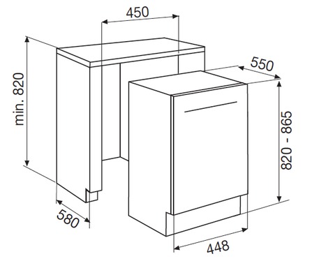 Encastrement (HxLxP) : 82 x 45 x 58 cm