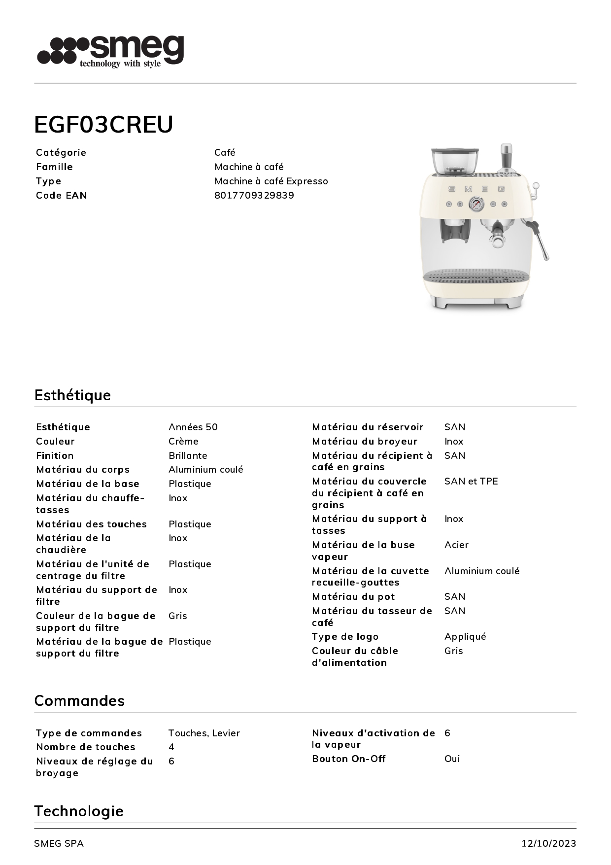 Machine à café Expresso Années 50 SMEG EGF03CREU