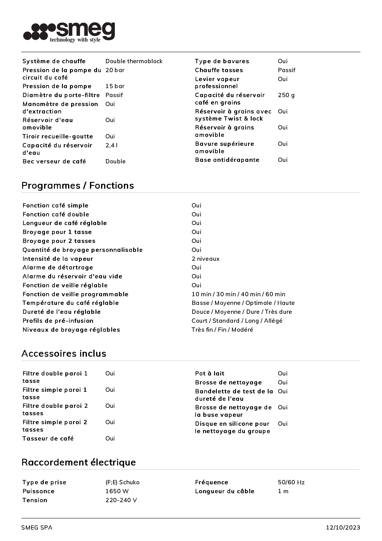 – Livré avec des filtres 1 et 2 tasses, un tasseur de café, un pot à lait, un disque en silicone pour le nettoyage du groupe café, brosse de nettoyage et bandelette de test de la dureté de l’eau