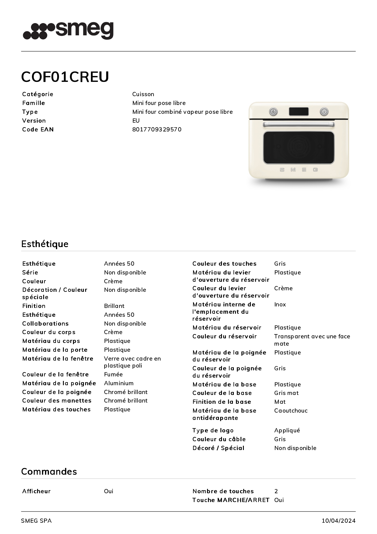 Mini Four SMEG Crème COF01CREU