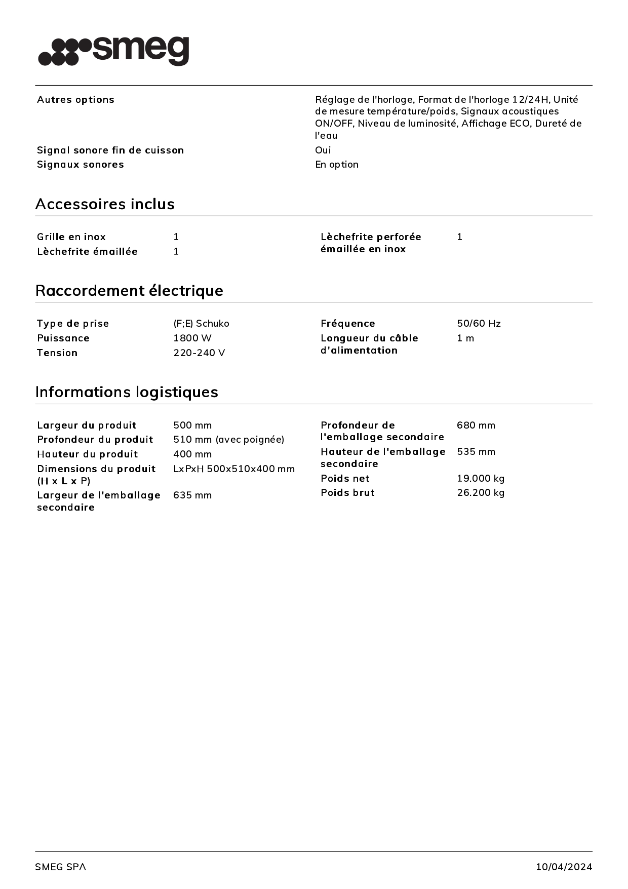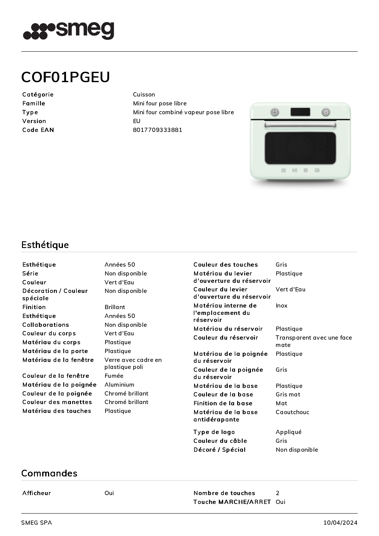 Autre(s) fonction(s) Vapeur, Menu de cuisson traditionnel (Statique, Chaleur brassée, Gril, Chaleur brassé et résistance sole, Air Fry, Réchauffage, Décongélation), Menu de cuisson à la vapeur (Vapeur pure, Vapeur combinée + chaleur brassée, Vapeur combinée + Chaleur brassée gril), Menu Chef (Viandes et volailles, Poissons et crustacés, Légumes et accompagnements, Gâteaux et sucreries, Pain / Pizza et tartes), 33 recettes automatiques