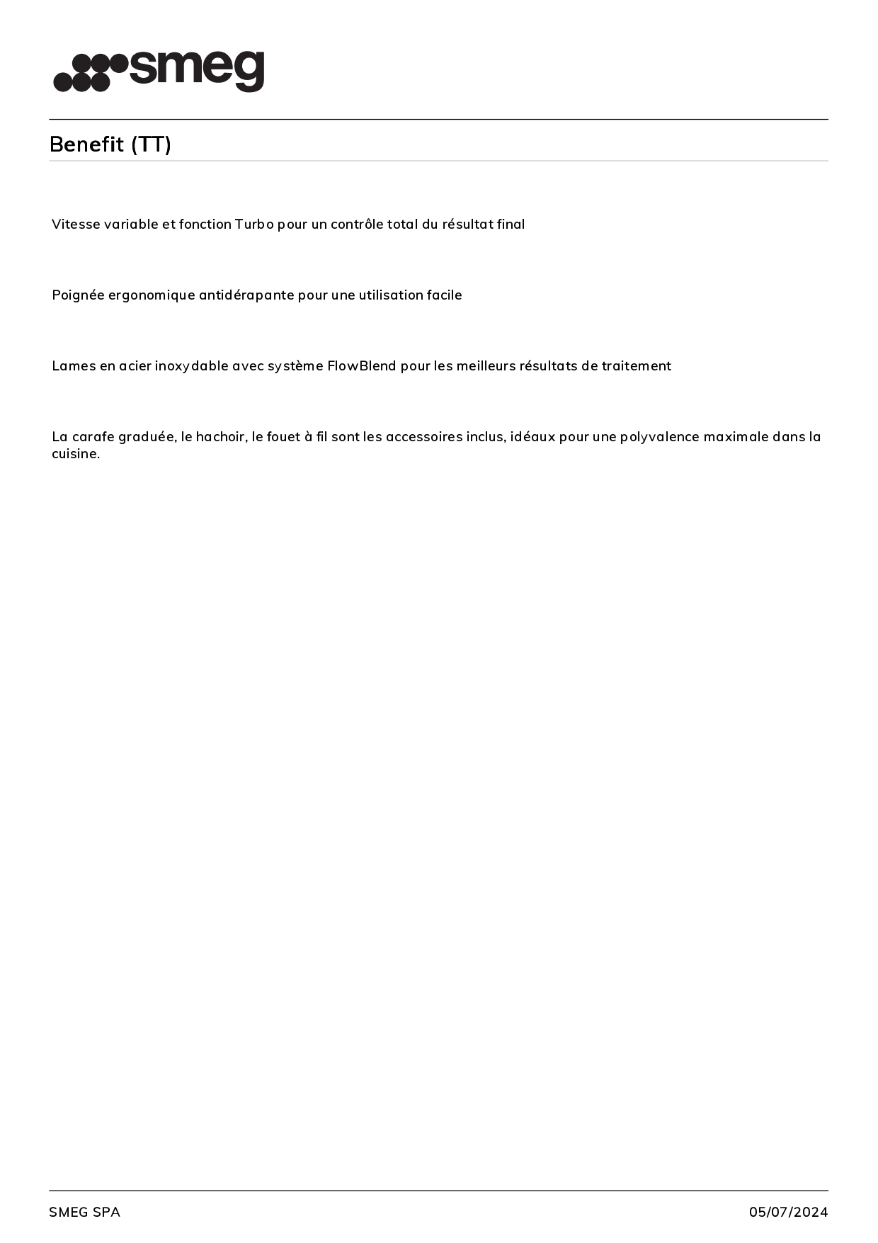 – Lames en acier inox avec système Flowblend