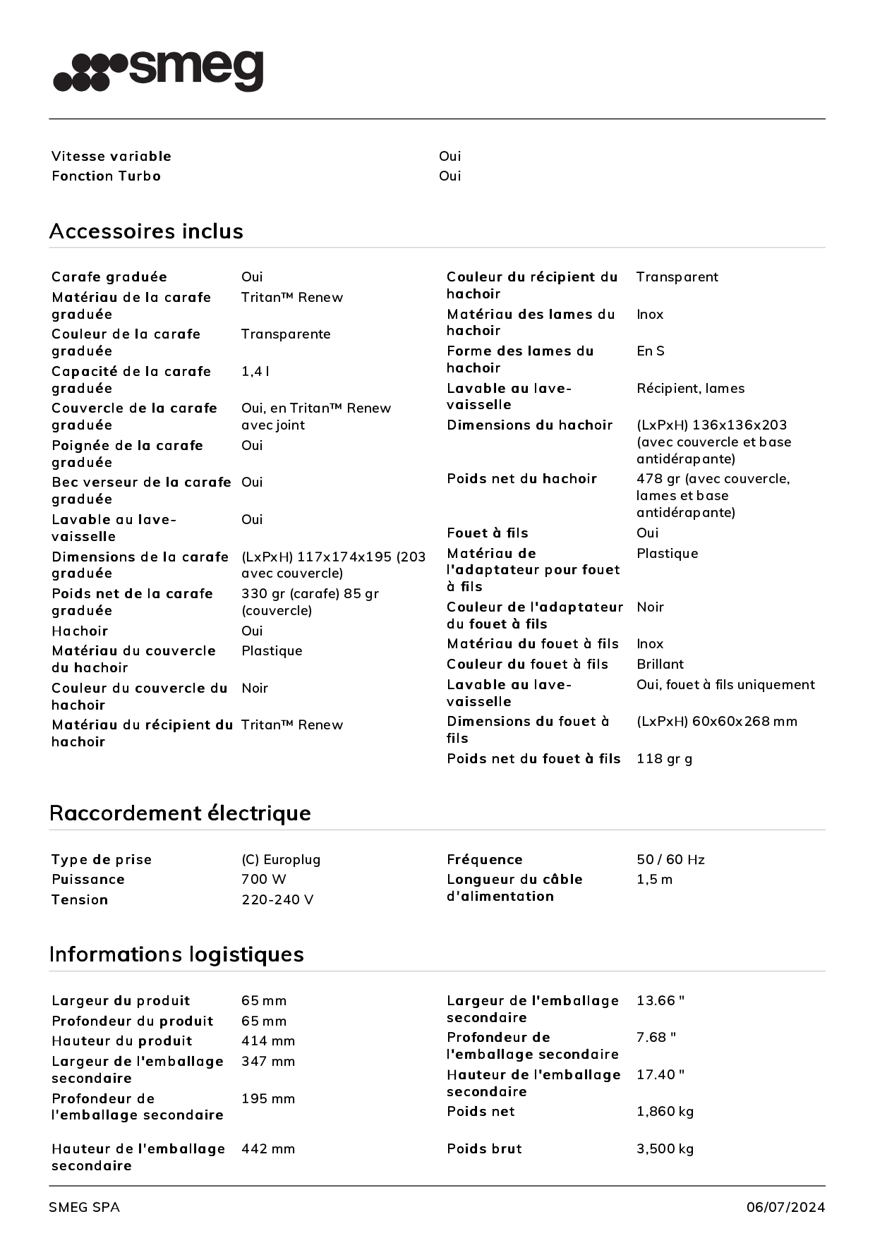 Mixeur plongeant avec accessoires SMEG Noir HBF03BLEU