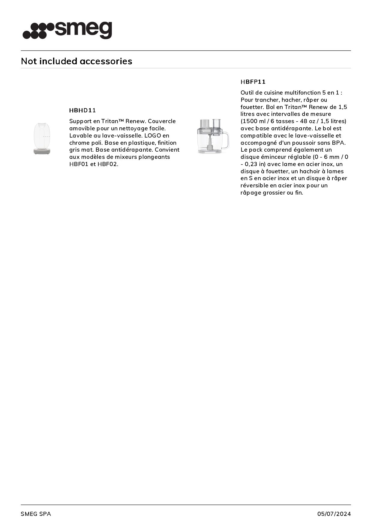 Mixeur plongeant avec accessoires SMEG Rouge HBF03RDEU