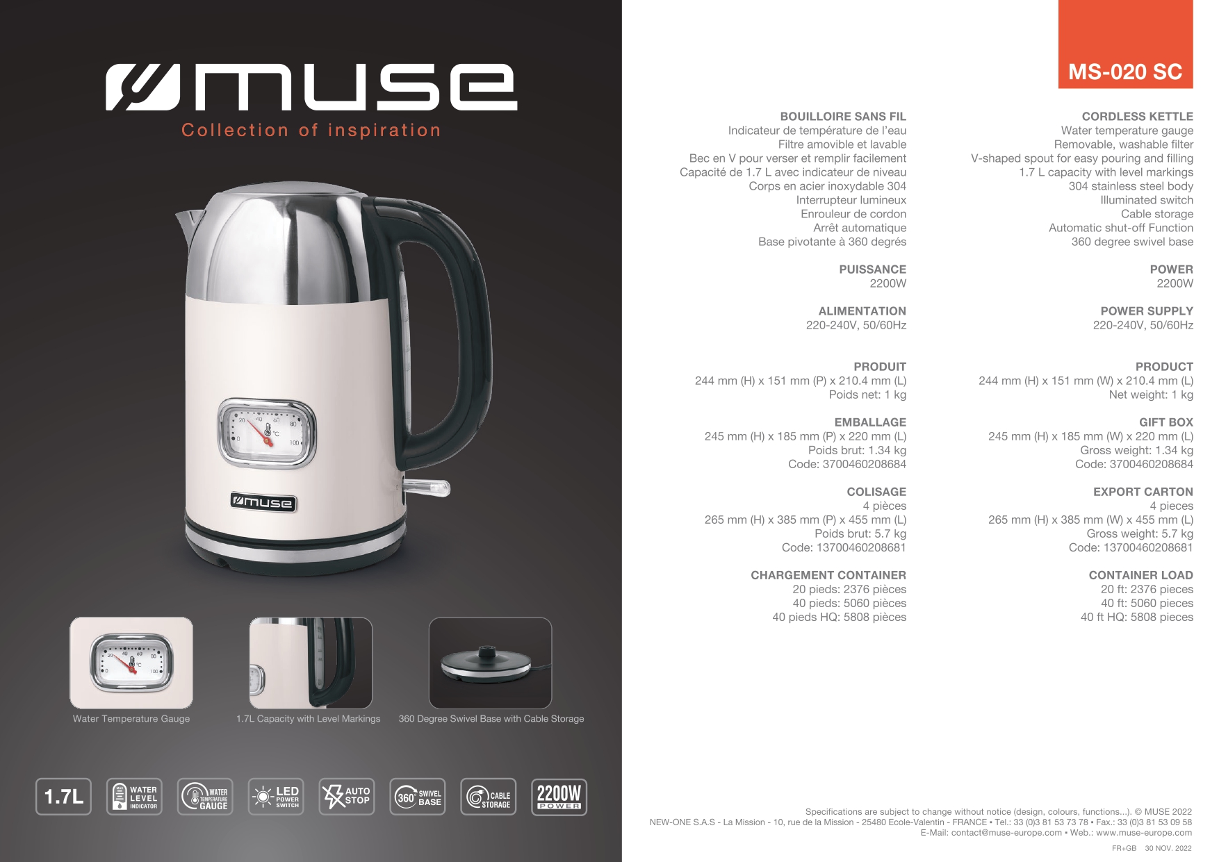 MUSE Bouilloire 1.7 L Crème & Inox – Collection of Inspiration – MS020SC