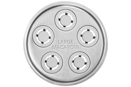 6 emporte-pièces interchangeables pour faire des pâtes fraîches : spaghetti, bucatini, rigatoni, fusilli et petits ou gros macaroni, en changeant simplement l’emporte-pièce.