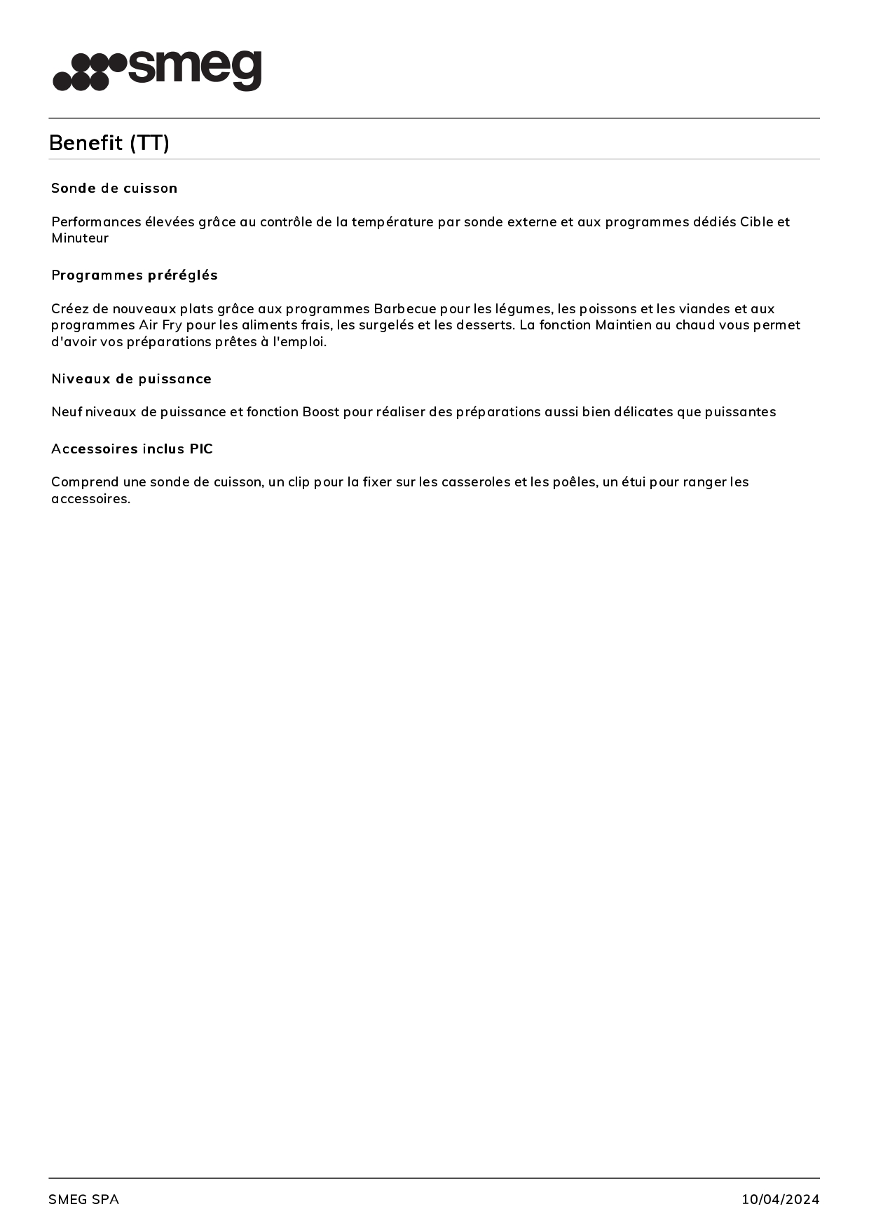 | Nbre de positions de cuisson | 9 |