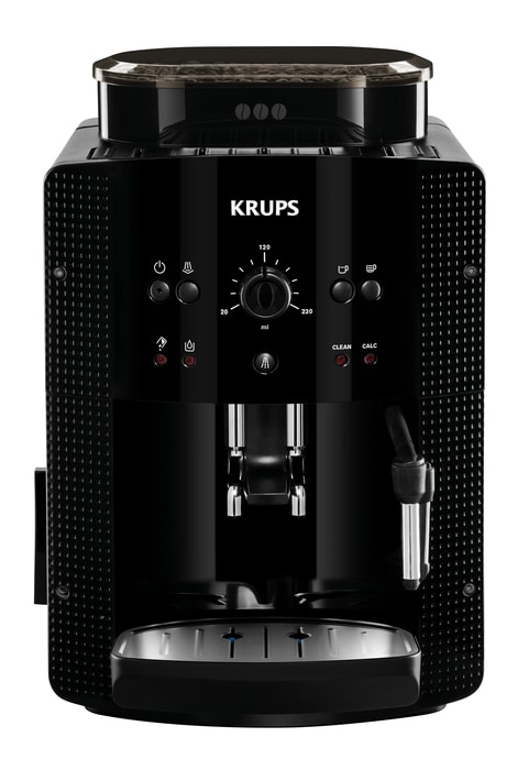 L’expresso broyeur Krups trouve facilement sa place dans toutes les cuisines avec son design compact au coloris noir et aux finitions brillantes.