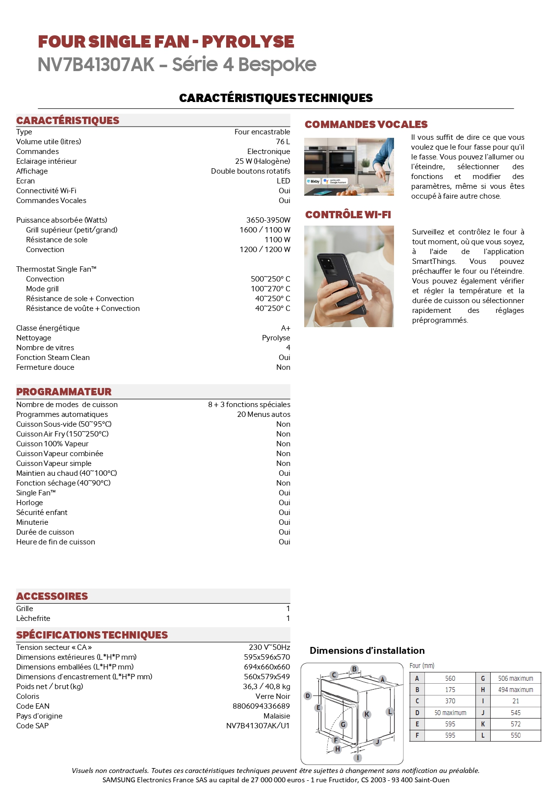 | Le + produit | Commandes vocales via l’application SmartThings |