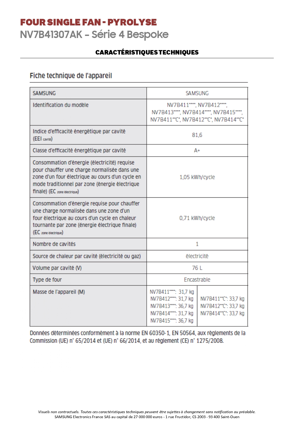 | Volume du four | 76 L |