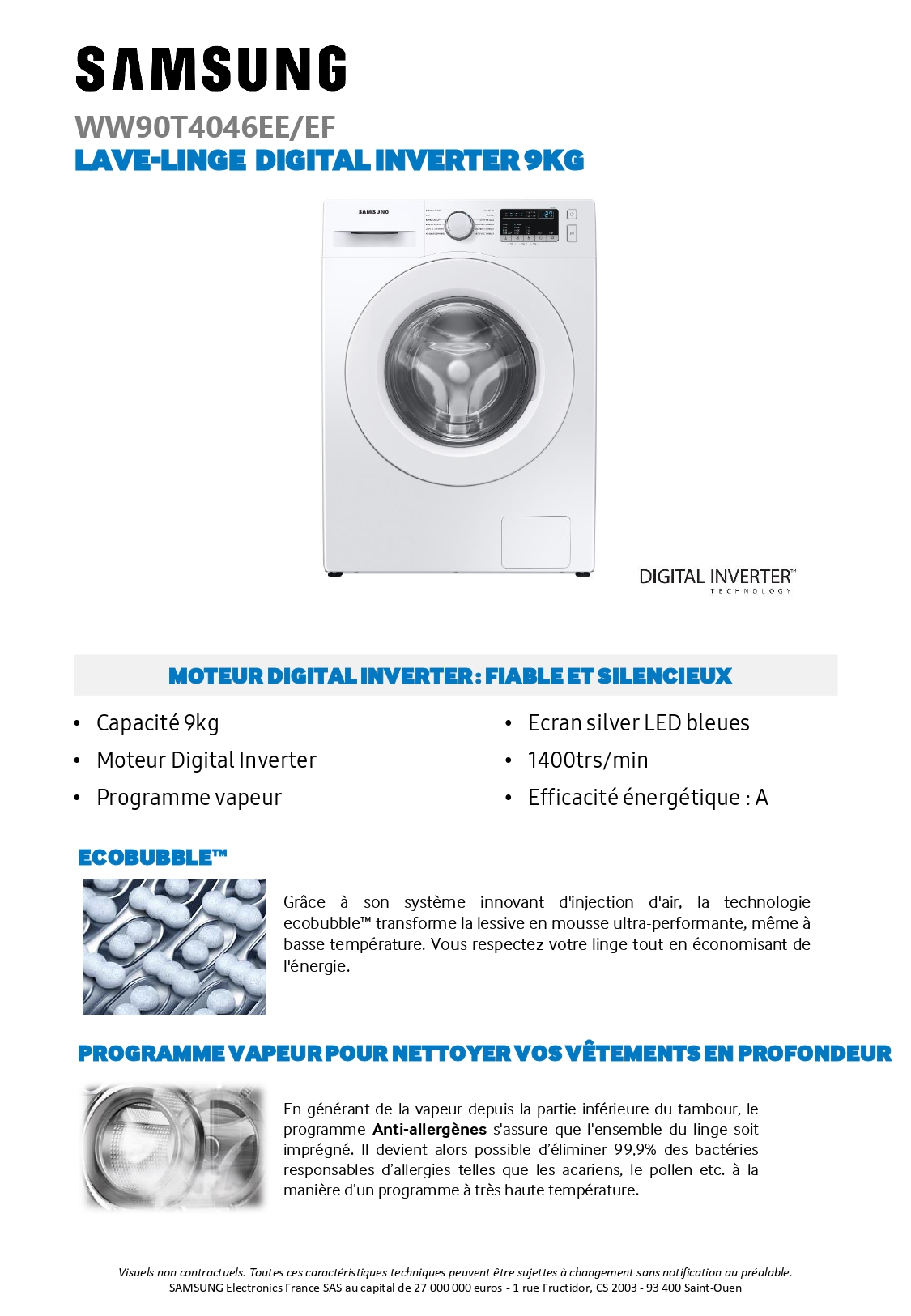 SAMSUNG Lave-linge frontal WW90T4046EE