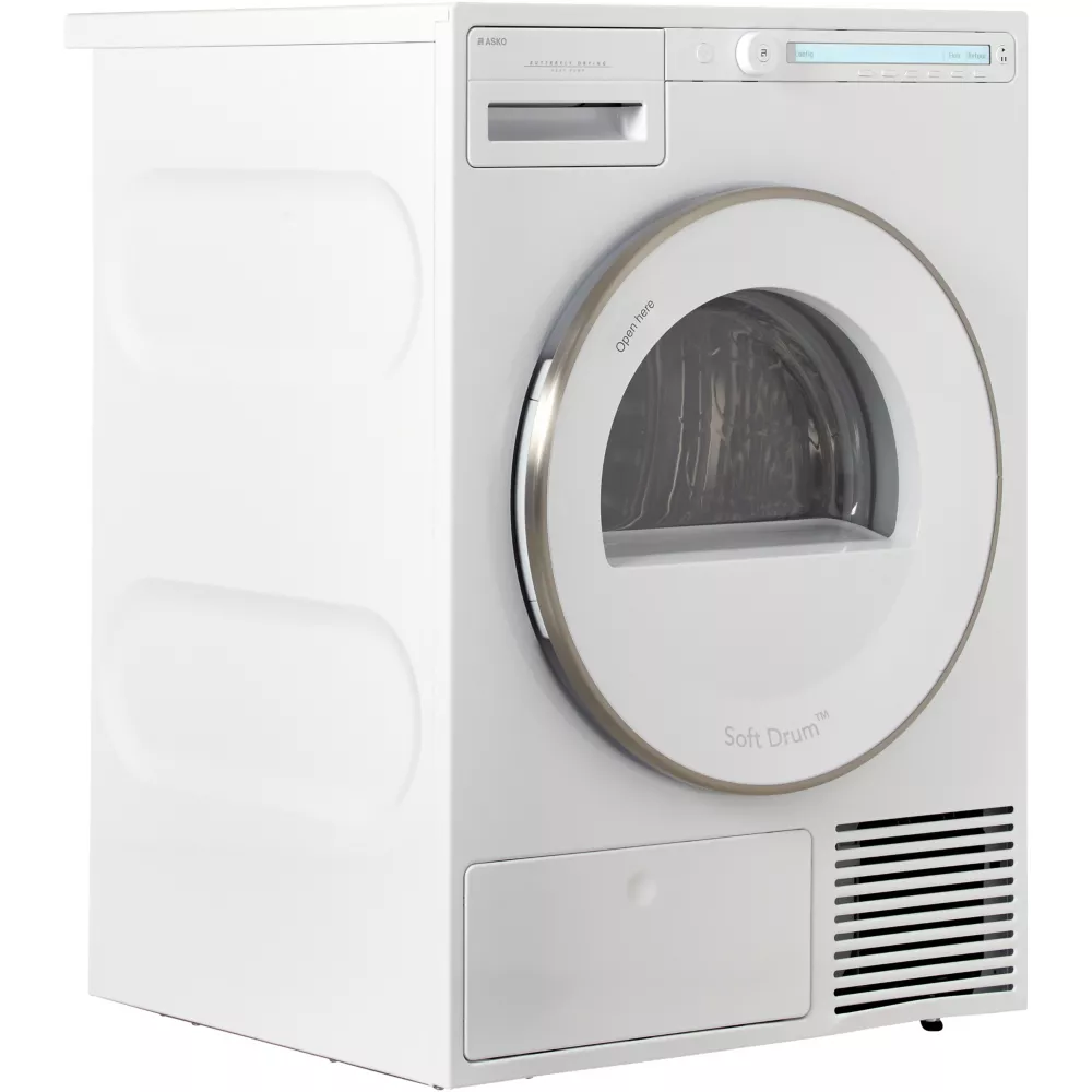 Ce sèche-linge frontal Asko T208H.W blanc d’une construction robuste, est doté d’une capacité de 8 kg, 10 programmes, d’un tambour Soft Drum, d’une pompe à chaleur A++.