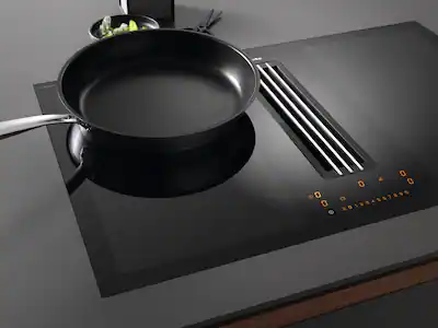 La table de cuisson 2 en 1 KMDA 7272 FR-U est également équipée d’une hotte intégrée très performante.