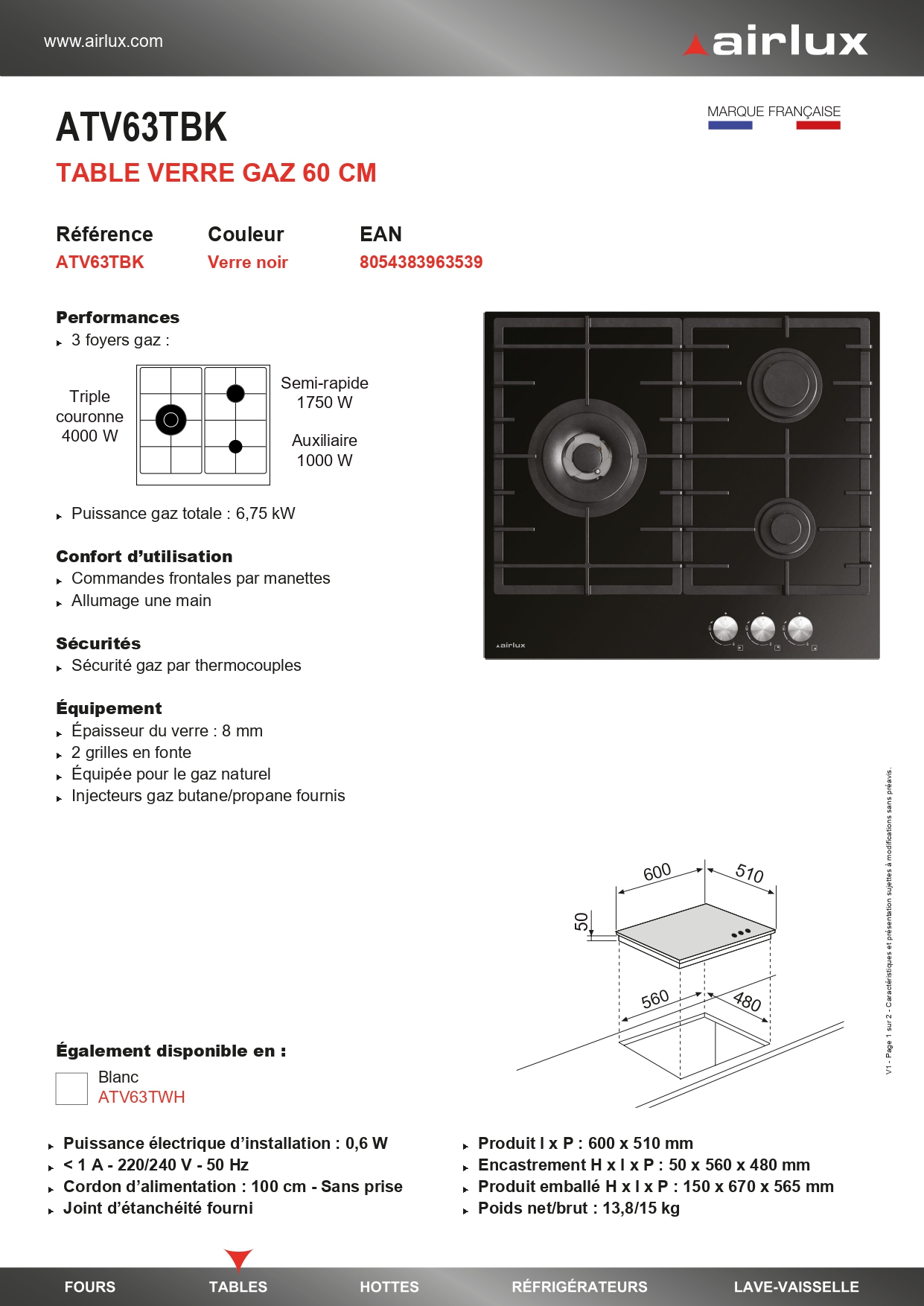 - Table de cuisson Airlux