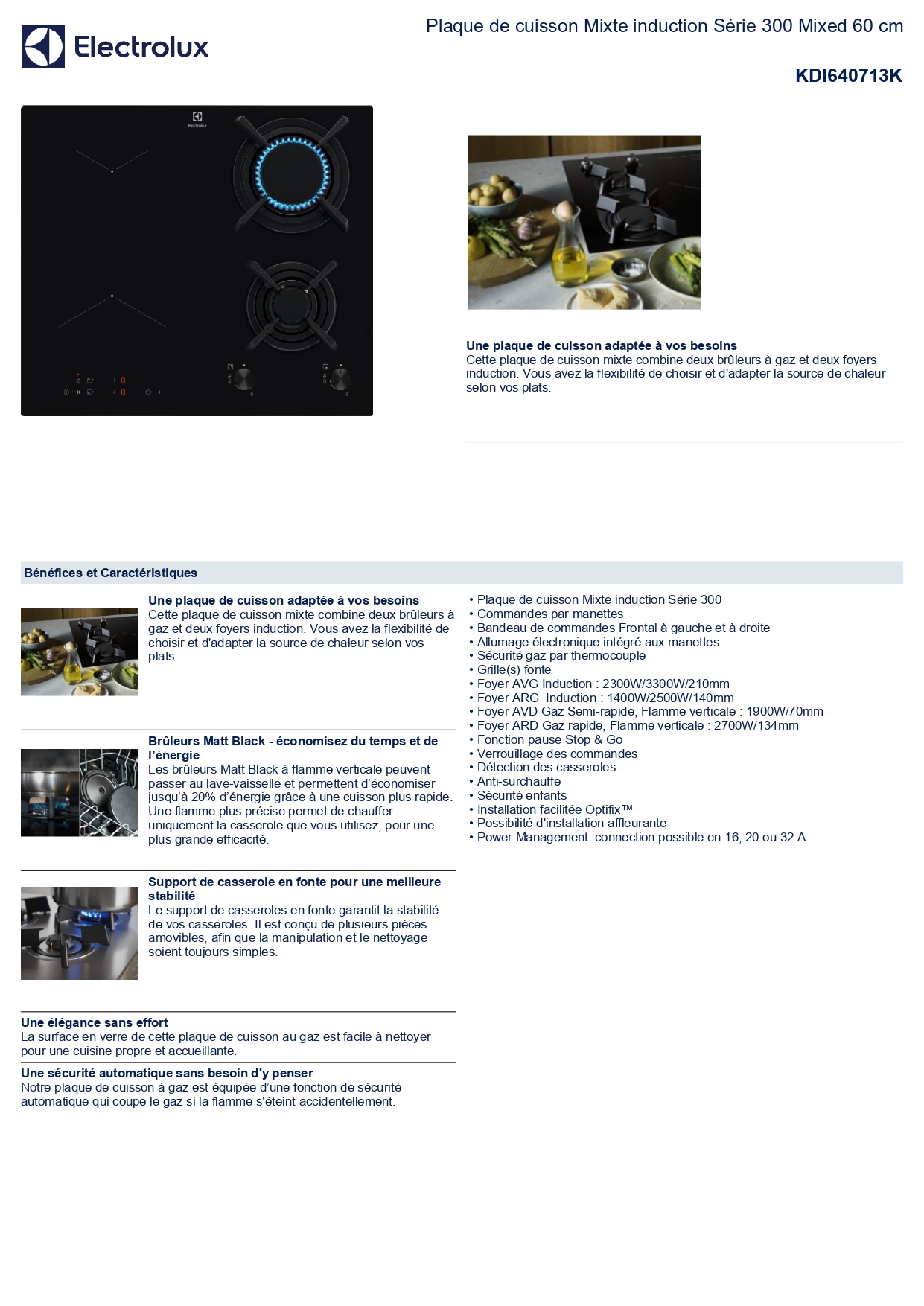 Table de cuisson mixte ELECTROLUX KDI640713K