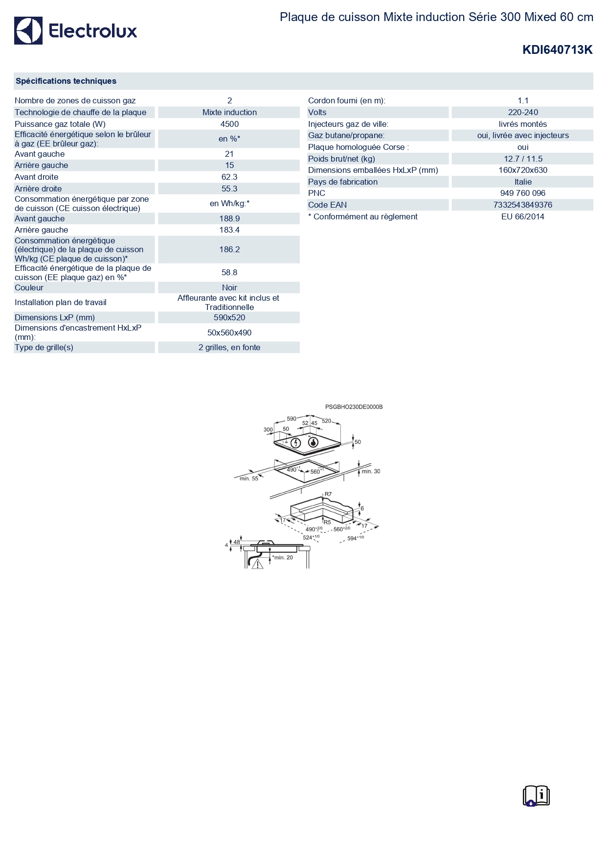 Table de cuisson mixte ELECTROLUX KDI640713K