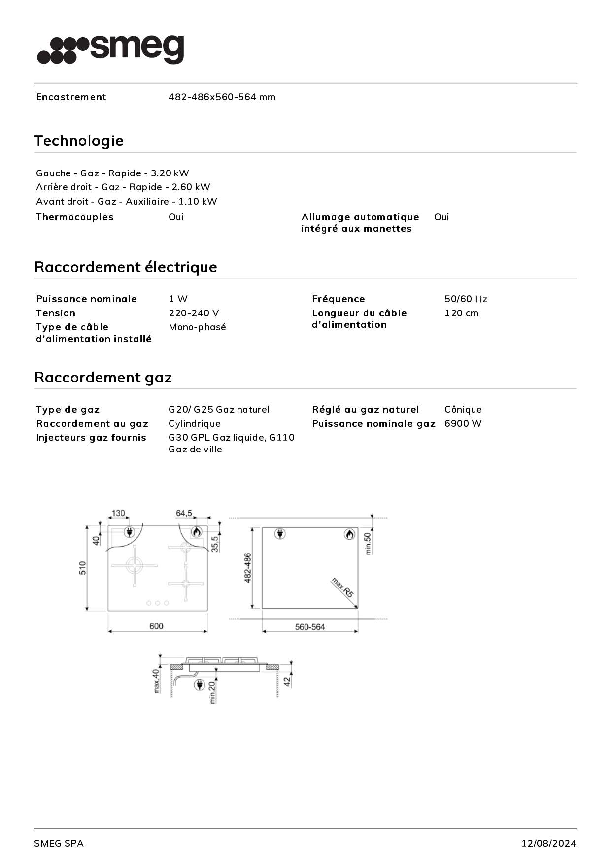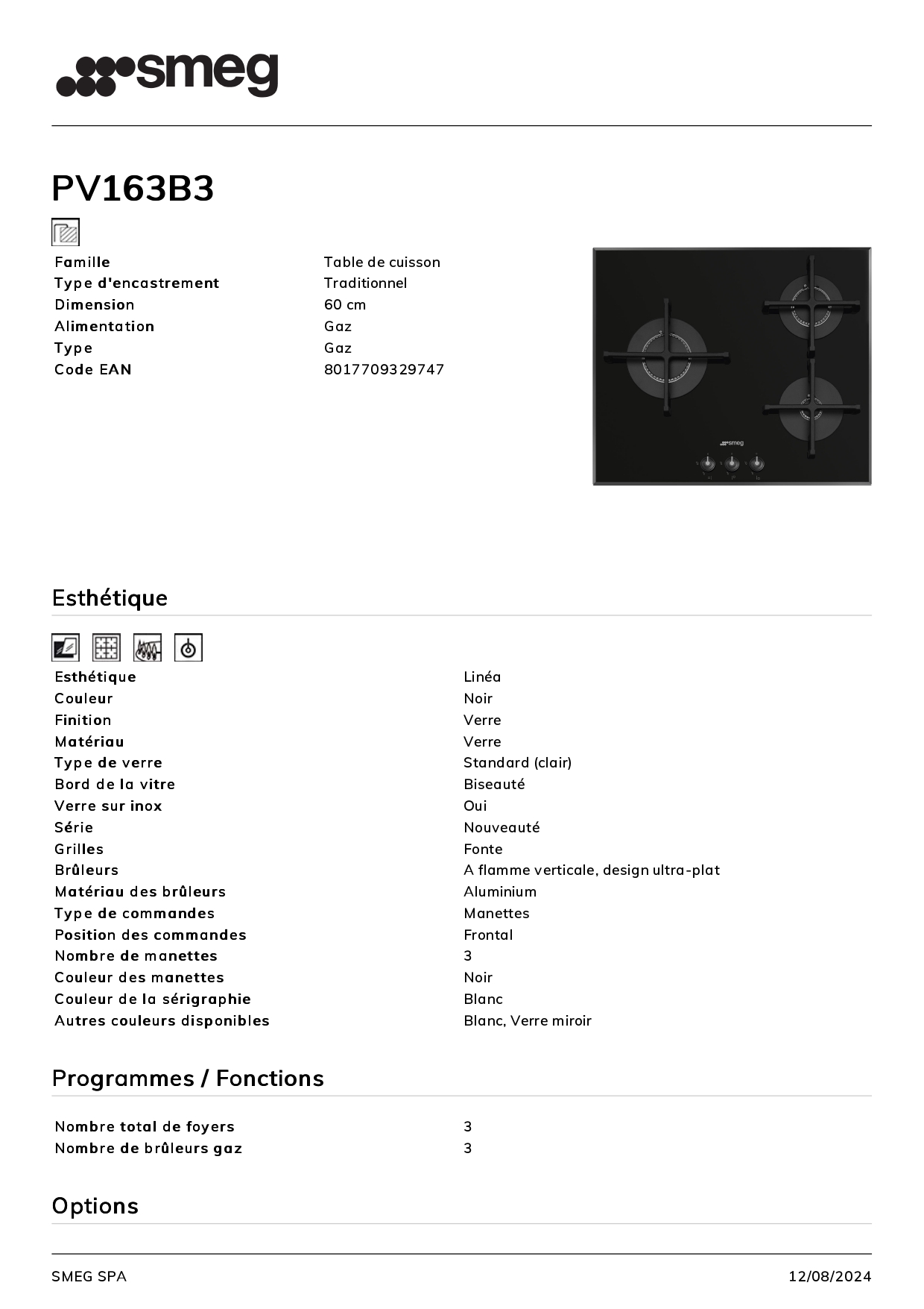 Table de cuisson SMEG