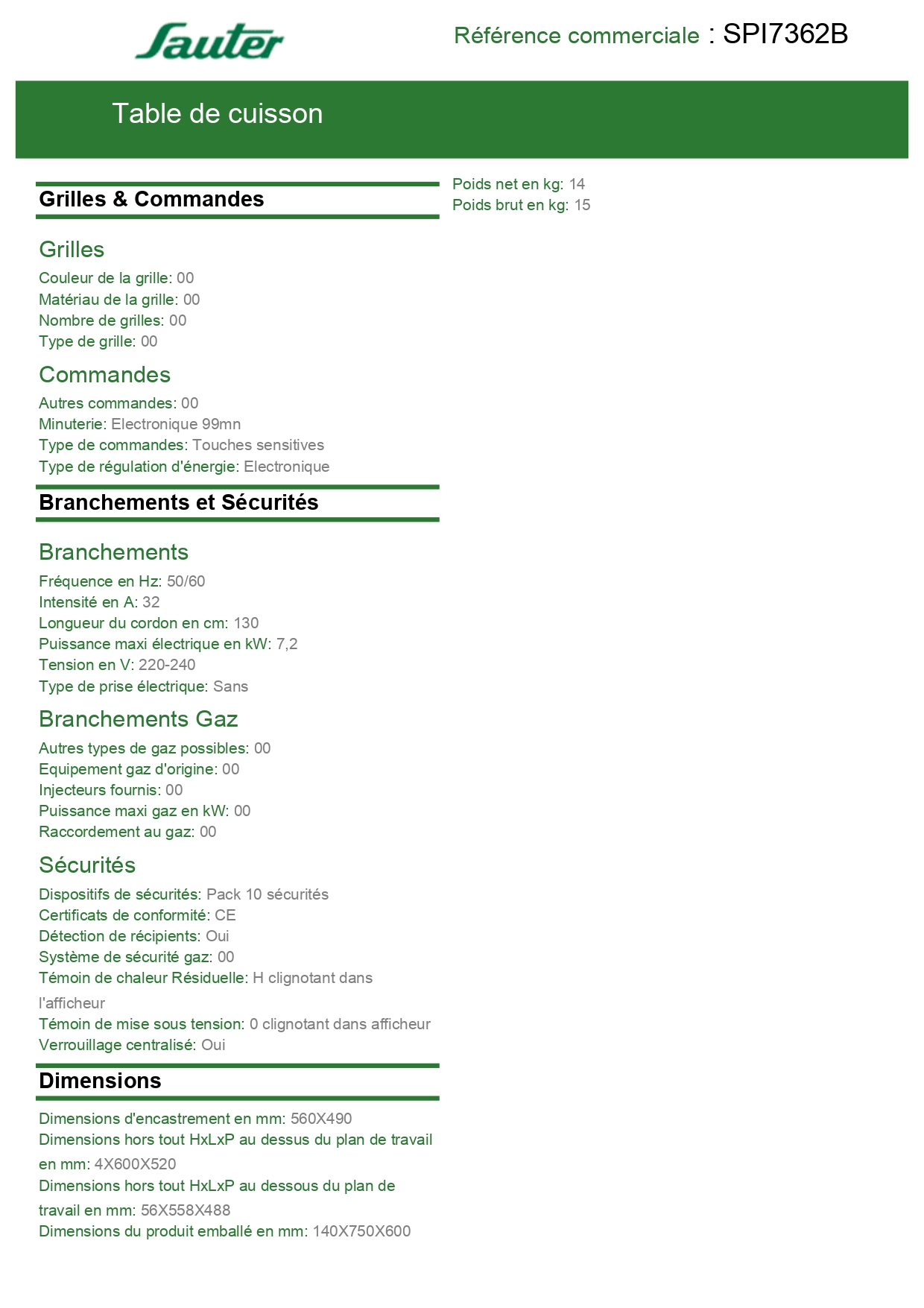Table Induction SPI7362B